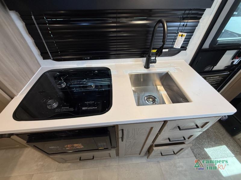 With any Rockwood GEO Pro travel trailer by Forest River you will enjoy easy towing, durable construction, and off-road capabilities with larger 15" tires and a lift kit! Each model is constructed with complete composite wall construction for added strength and durability, and the torsion axle, Rubber-Ryde suspension will make towing easier than ever. Inside, you'll find sleek roller shades for added privacy, a 12V refrigerator and a microwave, plus a 20,000 BTU furnace to keep you warm during the colder camping months.