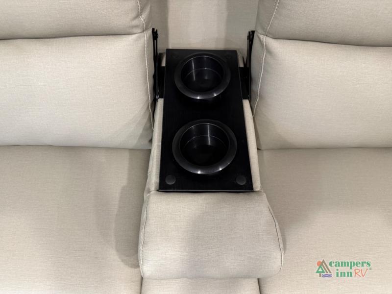 This is the perfect couple's trailer, so sneak away for a weekend in the woods. There is a 72" sofa with cupholders with a table that will be perfect for meals times and relaxing. This model includes a 32" 12V TV to keep you busy on those rainy days, and the queen bed will provide a great night's rest. This model also includes an outside griddle and an 11' power awning so you can enjoy those nice days outdoors!