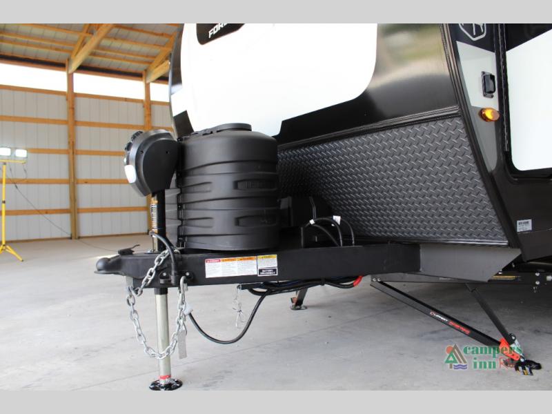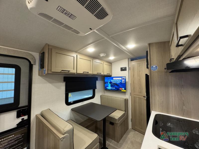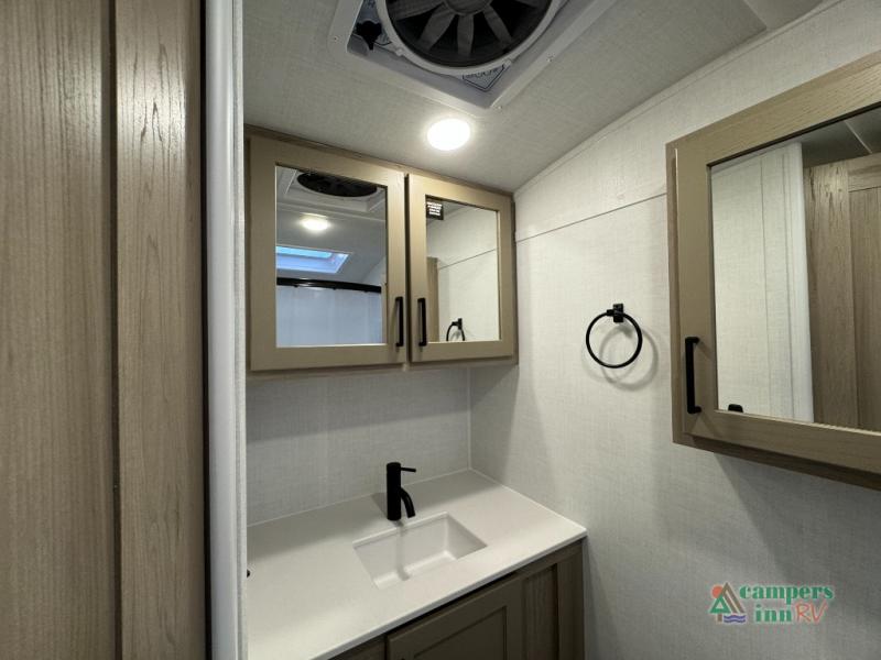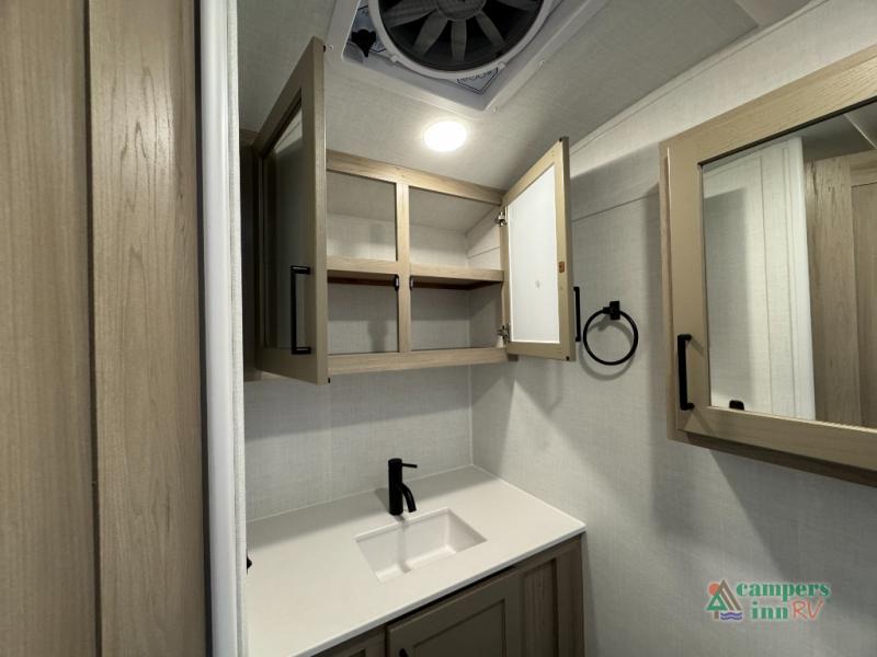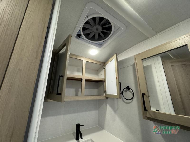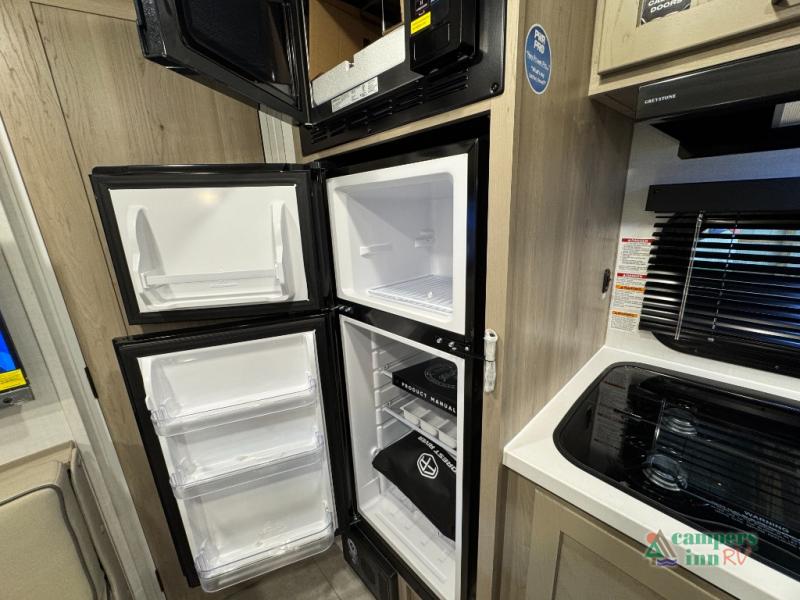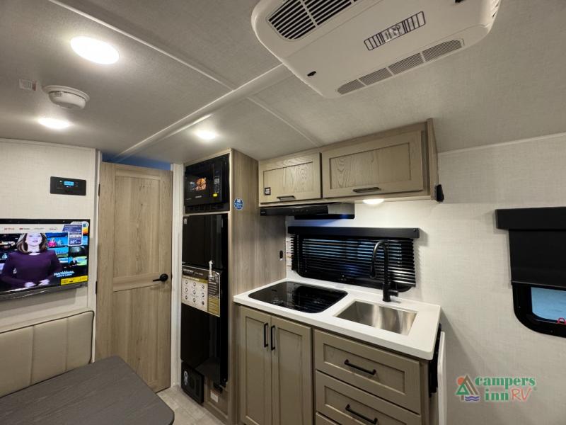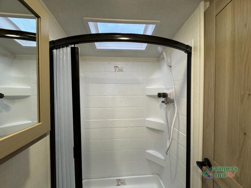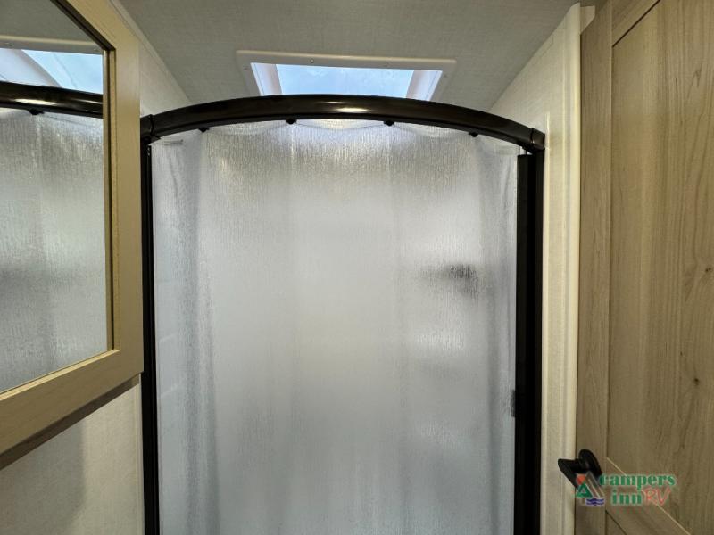 You will love how versatile this travel trailer is thanks to the Murphy bed up front. After you've had a great night's rest, just fold it up to relax on the 72" sofa. This will give the chef more space in the morning to prepare breakfast on the three burner cooktop or in the microwave oven. There is a 32" booth dinette to dine at, or you may just want to take your plate outdoors under the 14' power awning. The full rear bath includes a large linen closet to store clean towels and there is a Showermiser Water Saver you are sure to appreciate. You will appreciate a pass-through storage, plus additional exterior storage so you can bring along hiking gear, water tubes, and fishing poles! The optional Power Package available on this model includes three 200W solar panels, an 11,000 BTU Coleman Mach soft start A/C, two smart remotes, and more off-grid features!