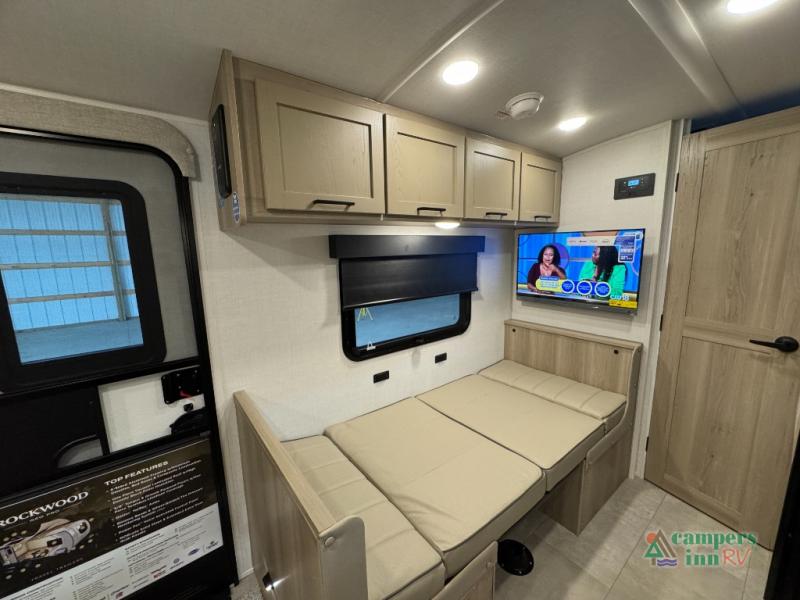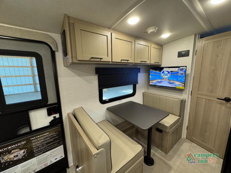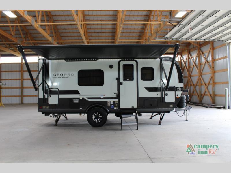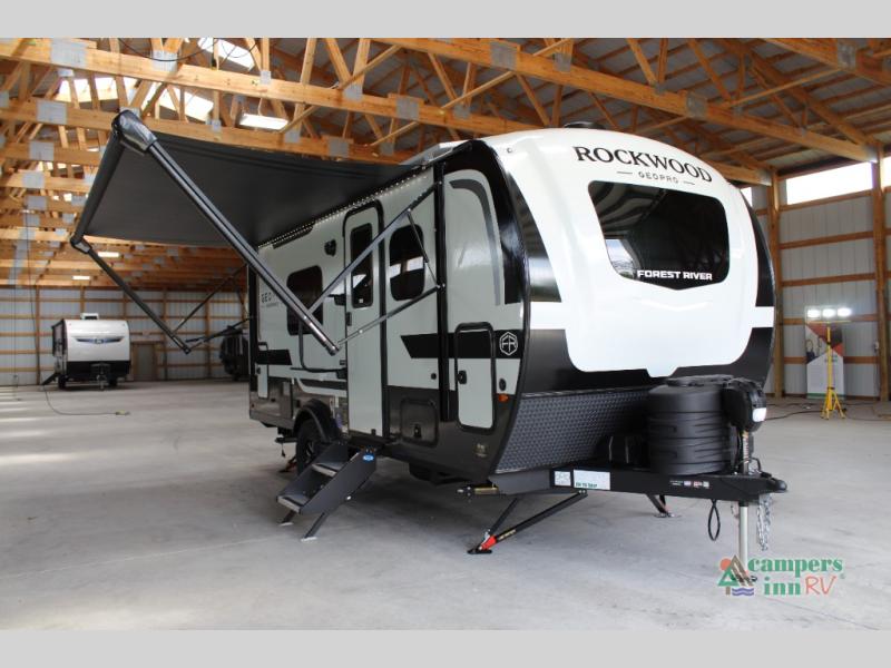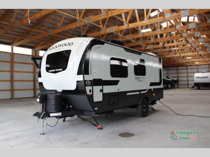 With any Rockwood GEO Pro travel trailer by Forest River you will enjoy easy towing, durable construction, and off-road capabilities with larger 15" tires and a lift kit! Each model is constructed with complete composite wall construction for added strength and durability, and the torsion axle, Rubber-Ryde suspension will make towing easier than ever. Inside, you'll find sleek roller shades for added privacy, a 12V refrigerator and a microwave, plus a 20,000 BTU furnace to keep you warm during the colder camping months.