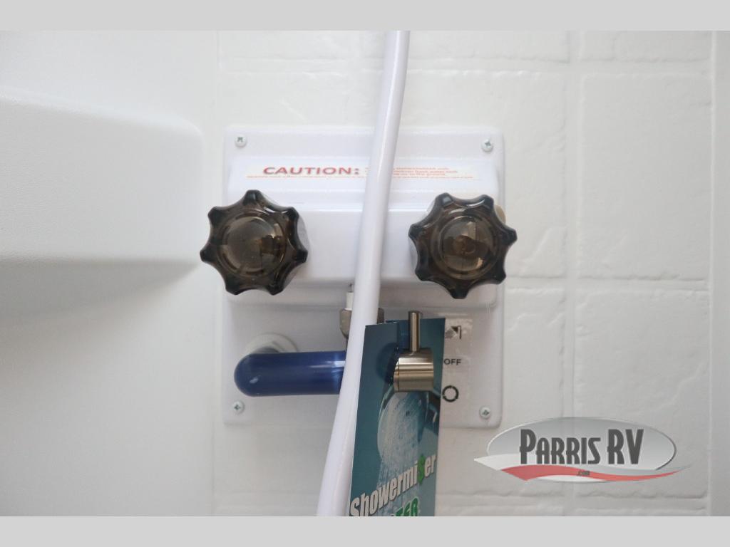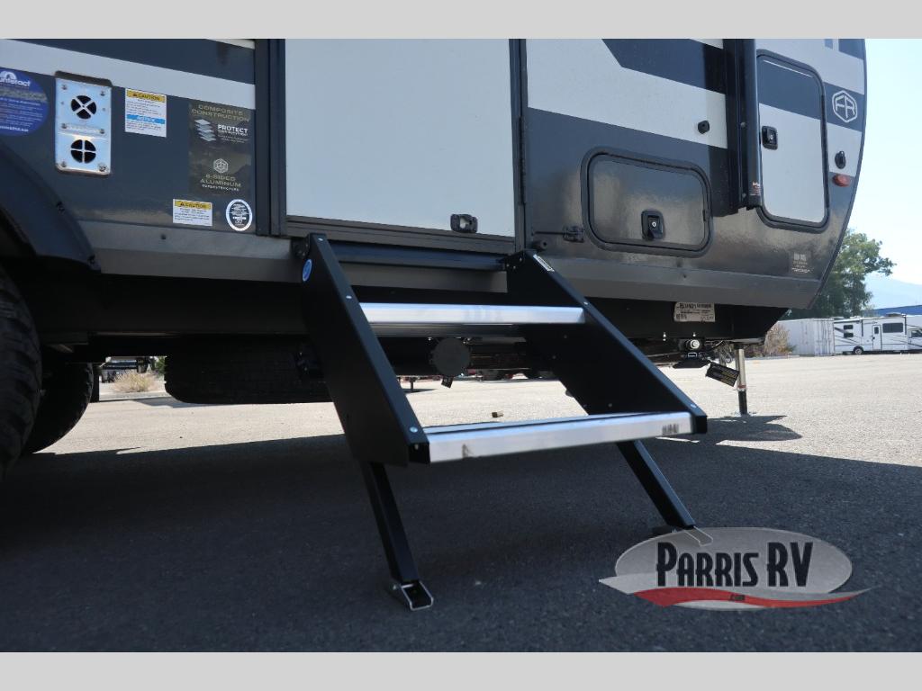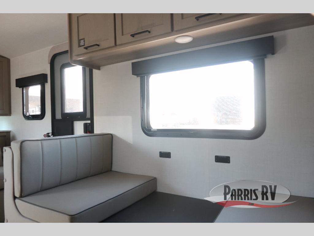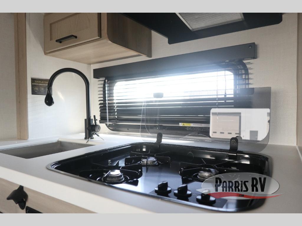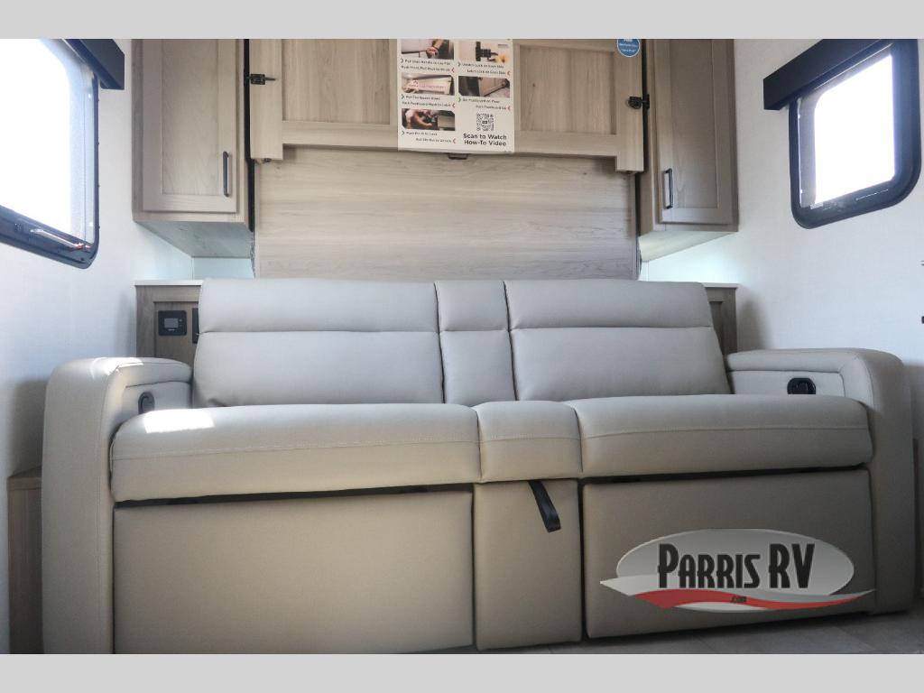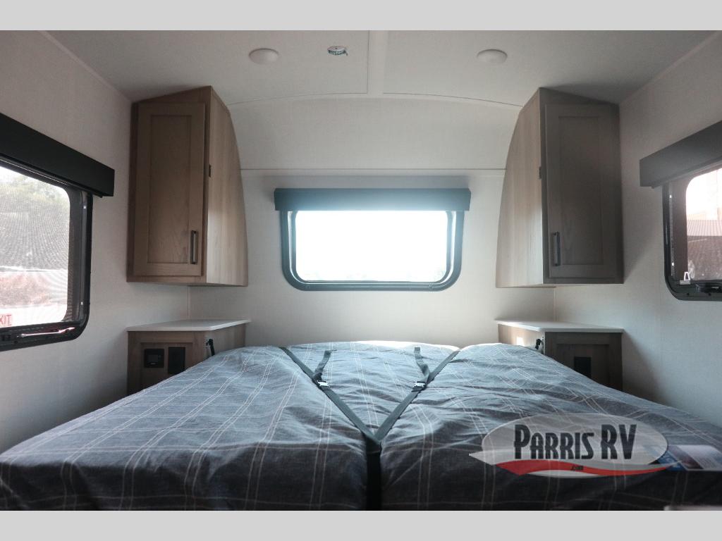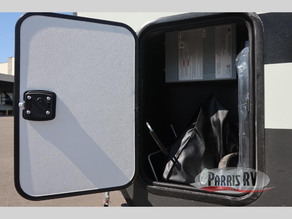 Comfortable sleeping space, convenient seating space, and a full rear bath makes this couple's trailer the one! You will love being able to relax on the sofa during the day, and sleep on the Murphy bed at night. There is a single slide out that will provide you more space to move around or cook meals, and the full bath includes a large shower so you won't feel cramped. If it's a rainy day you can watch movies on the 32" 12V TV, and if it's nice out, sit under the 14' power awning and cook lunch on the outside griddle. The possibilities are endless with this couple's trailer! The optional Power Package available on this model gives you the option to go off-grid for even longer amounts of time!