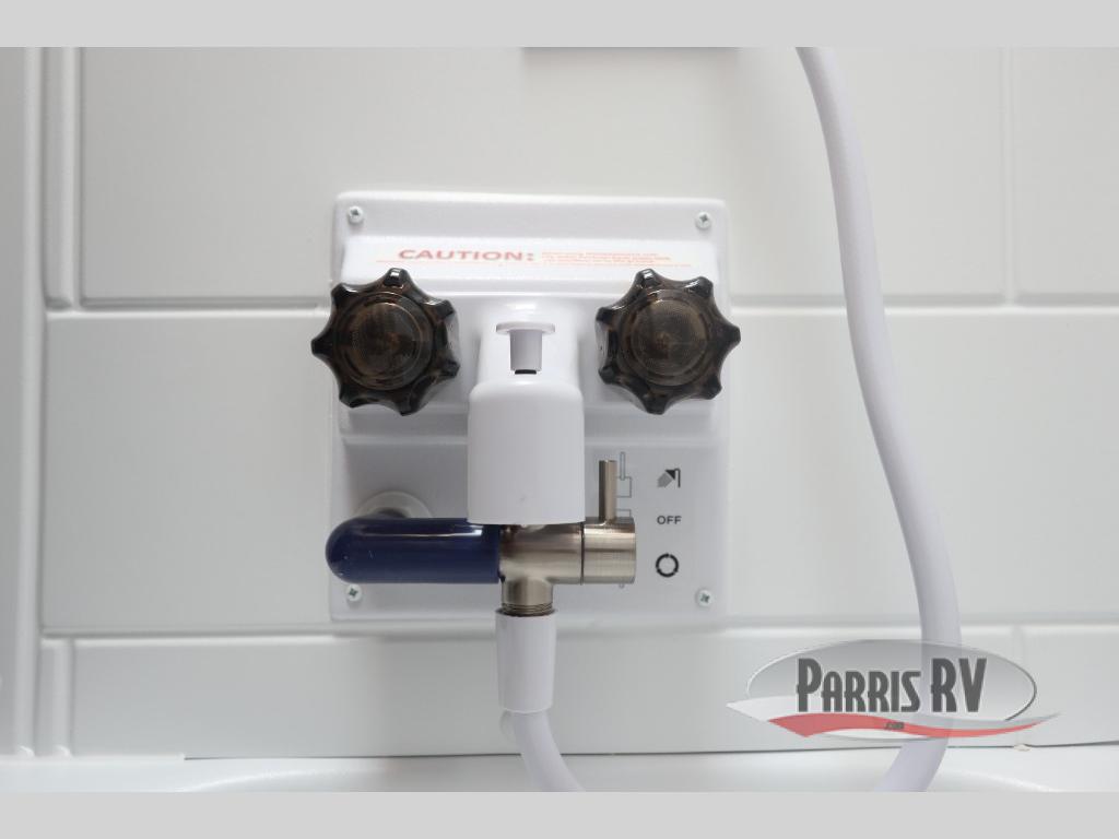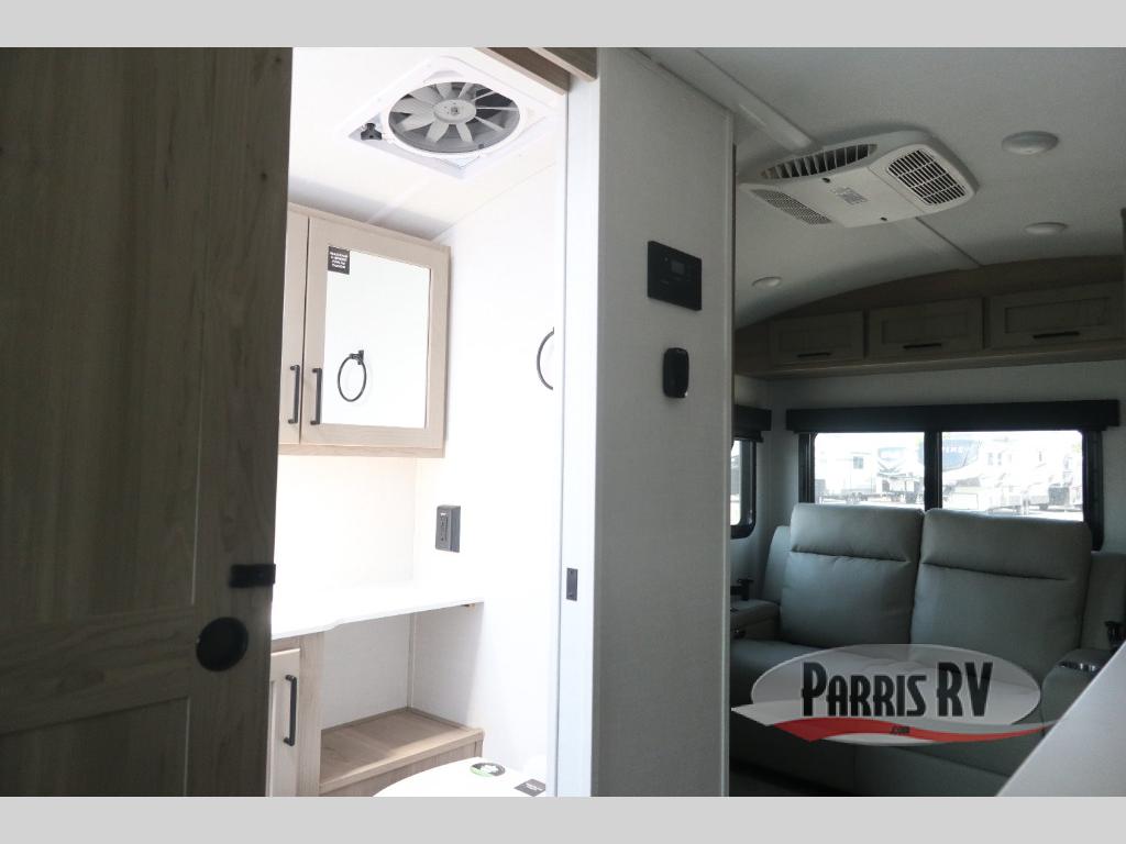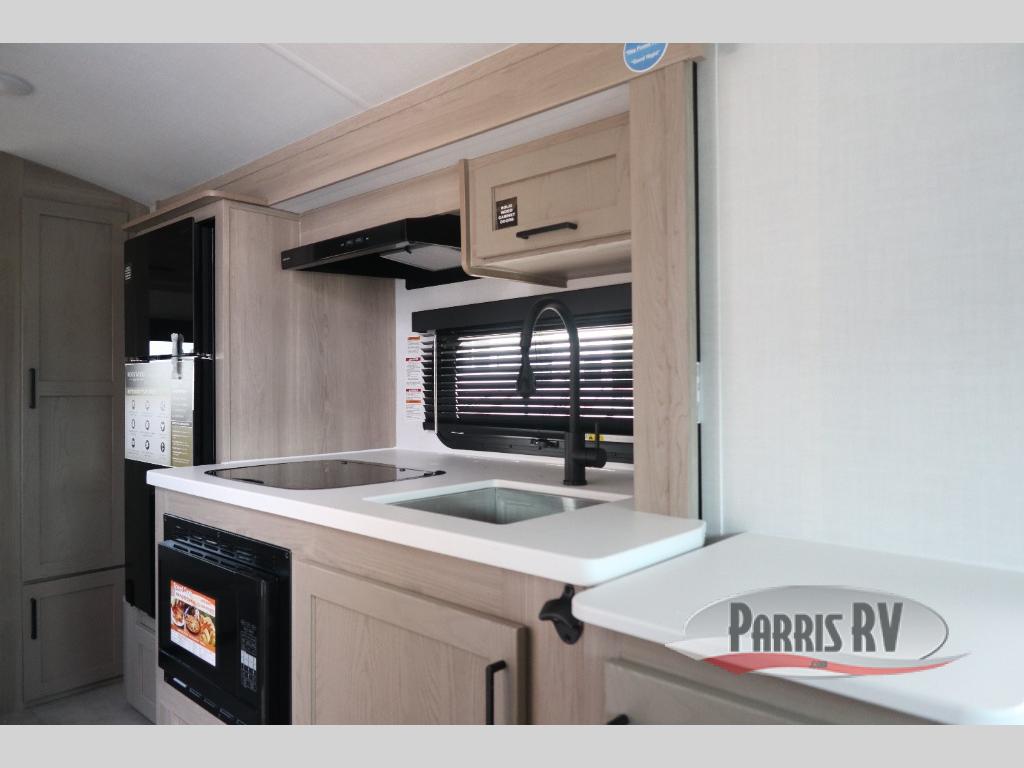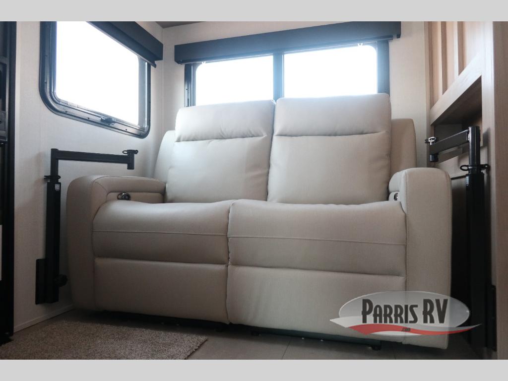 Start having unforgettable adventures with this amazing travel trailer! The queen-sized bed is the perfect spot to unwind and recharge after a day of exploring, offering a restful sleeping space that's sure to leave you feeling refreshed. The full bathroom has everything you need to refresh and rejuvenate in private. In the kitchen-living room combined area, you will find a three-burner cooktop for gourmet meals, a convection microwave for quick and easy cooking, and a spacious fridge to keep your ingredients fresh, plus overhead cabinets and a pantry/closet provide ample storage for cookware, dishes, and food. In addition, you can have endless evenings of amusement in the theater seat, which is the perfect spot to relax and enjoy your favorite shows or movies on the TV. On the outside, the exterior awning provides a shaded spot to enjoy the outdoors, while the pass-through storage offers plenty of room for gear, luggage, and equipment.