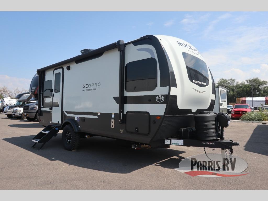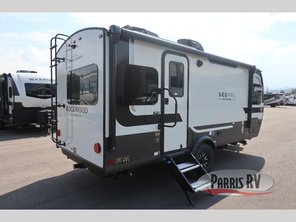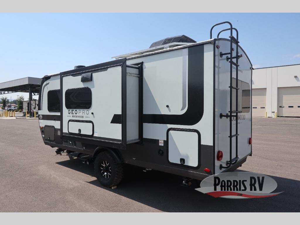 With any Rockwood GEO Pro travel trailer by Forest River you will enjoy easy towing, durable construction, and off-road capabilities with larger laminated roof! Each model is constructed with complete composite wall construction for added strength and durability, and Dexter® axles that will make towing easier than ever. Inside, you'll find sleek back up camera prep for added security, a refrigerator and a microwave, plus many other interior amenities that will make you feel at home on the road.