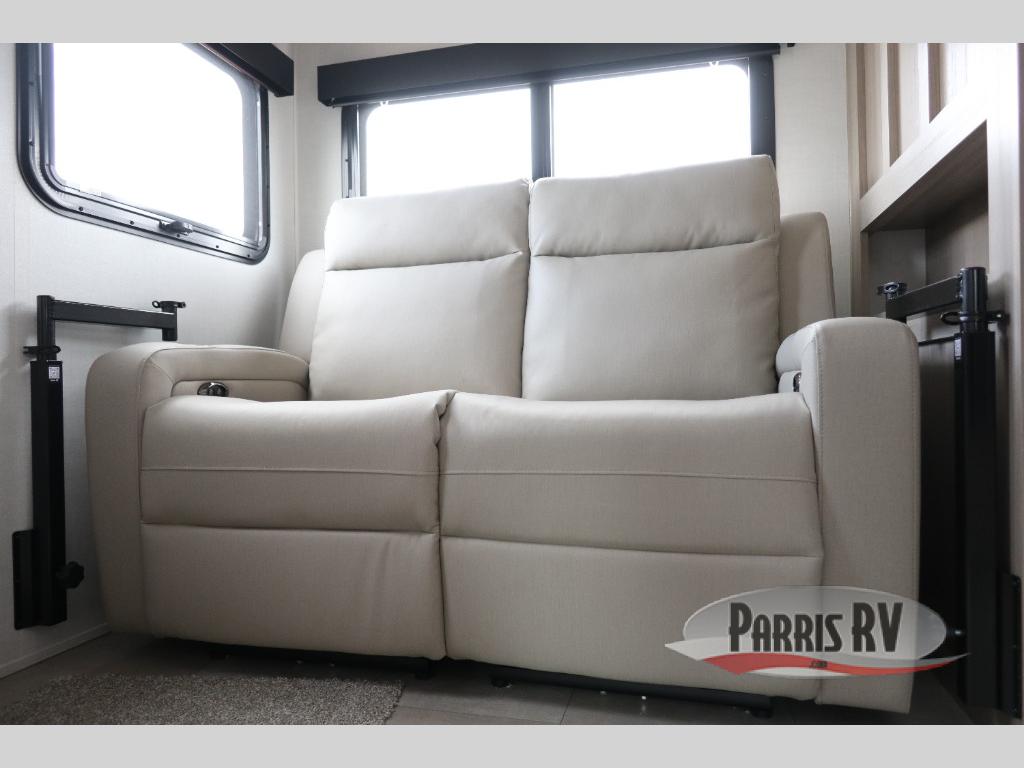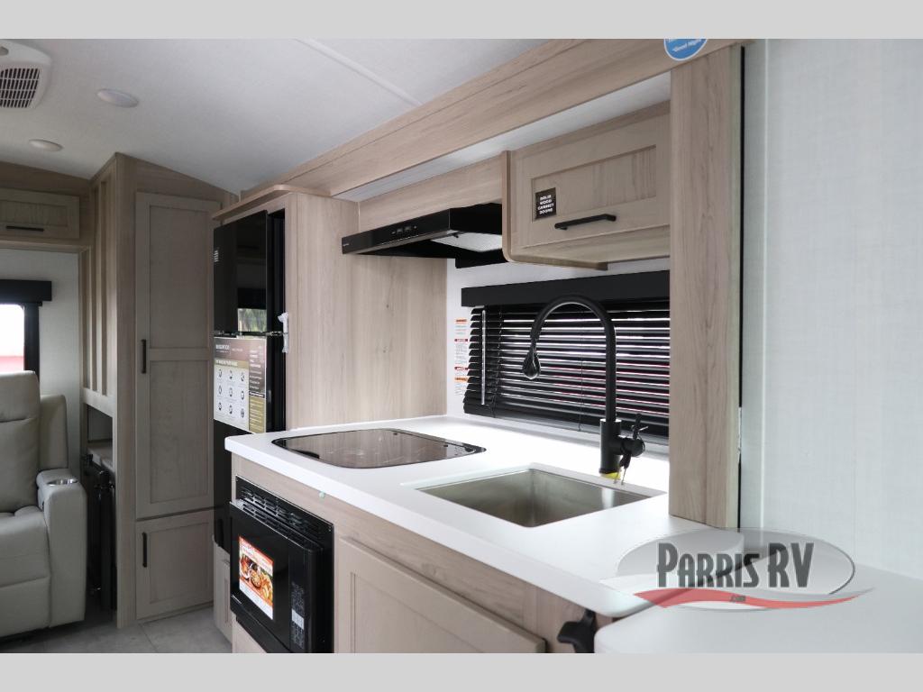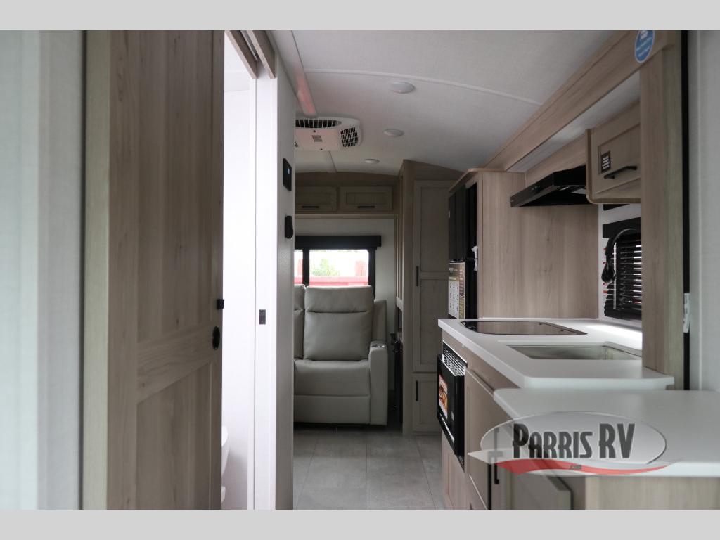 Start having unforgettable adventures with this amazing travel trailer! The queen-sized bed is the perfect spot to unwind and recharge after a day of exploring, offering a restful sleeping space that's sure to leave you feeling refreshed. The full bathroom has everything you need to refresh and rejuvenate in private. In the kitchen-living room combined area, you will find a three-burner cooktop for gourmet meals, a convection microwave for quick and easy cooking, and a spacious fridge to keep your ingredients fresh, plus overhead cabinets and a pantry/closet provide ample storage for cookware, dishes, and food. In addition, you can have endless evenings of amusement in the theater seat, which is the perfect spot to relax and enjoy your favorite shows or movies on the TV. On the outside, the exterior awning provides a shaded spot to enjoy the outdoors, while the pass-through storage offers plenty of room for gear, luggage, and equipment.