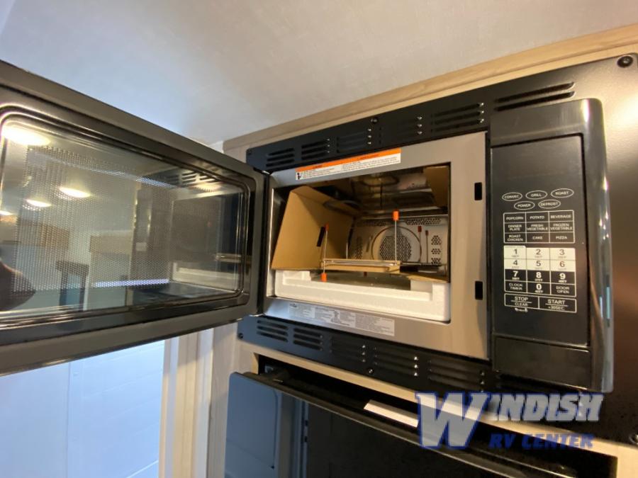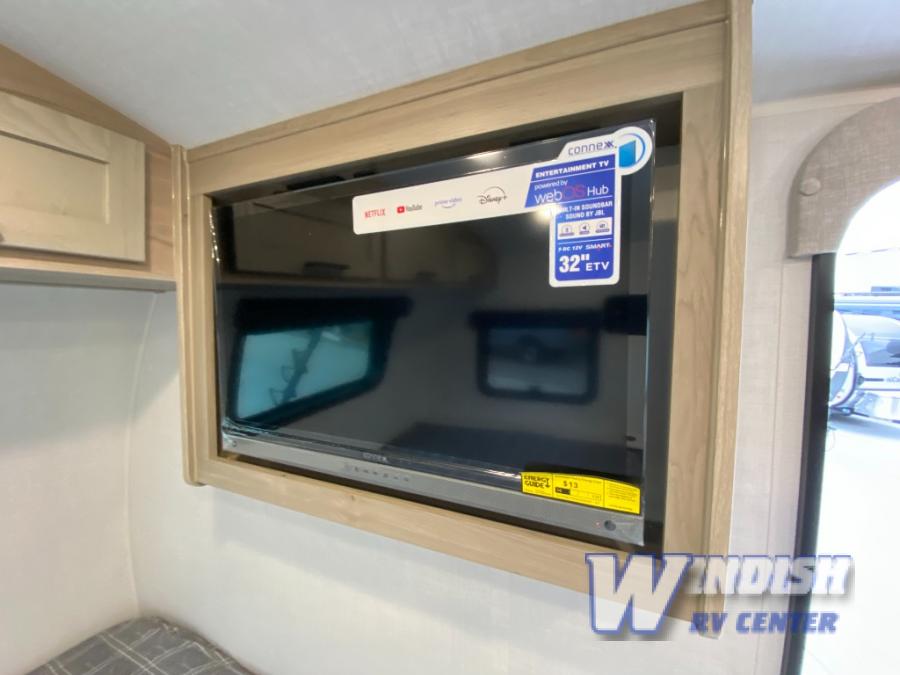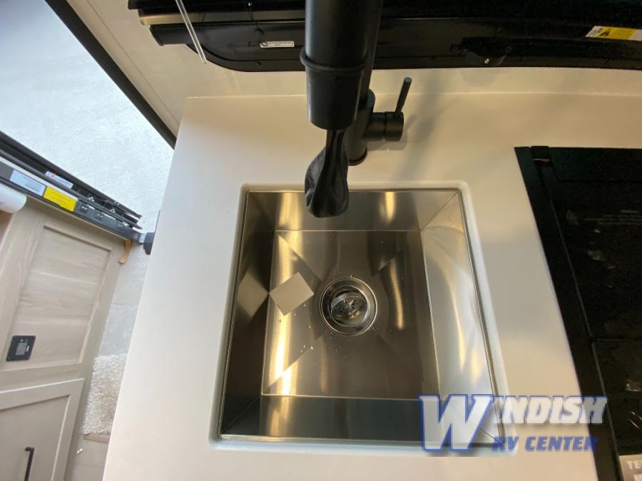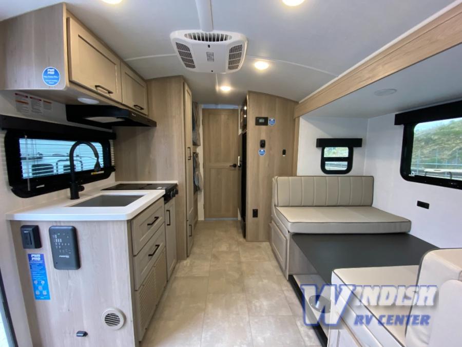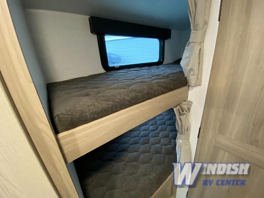 You're going to love camping with your family or friends in this spacious bunk model! The bunk beds will be perfect for little ones, while you take the front full-size bed. There is also a 44" booth dinette within the slide out for additional sleeping and seating space. The kitchen includes everything the chef will need to prepare meals each day, including a recessed cooktop, microwave oven, and a 12V refrigerator for perishables. If the weather is nice, you may just find the chef outdoors cooking on the outside griddle under the 14' power awning. And check out the exterior bike door that will be perfect for bikes, luggage, or extra camp gear. The optional Power Package available on this model includes three 200W solar panels, a 460 Ah Mastervolt MLI lithium-ion battery, two smart remotes, and more off-grid features!