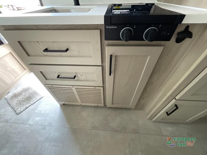 Outdoor Griddle Station – Cook under the stars with the swing-out outdoor kitchen.