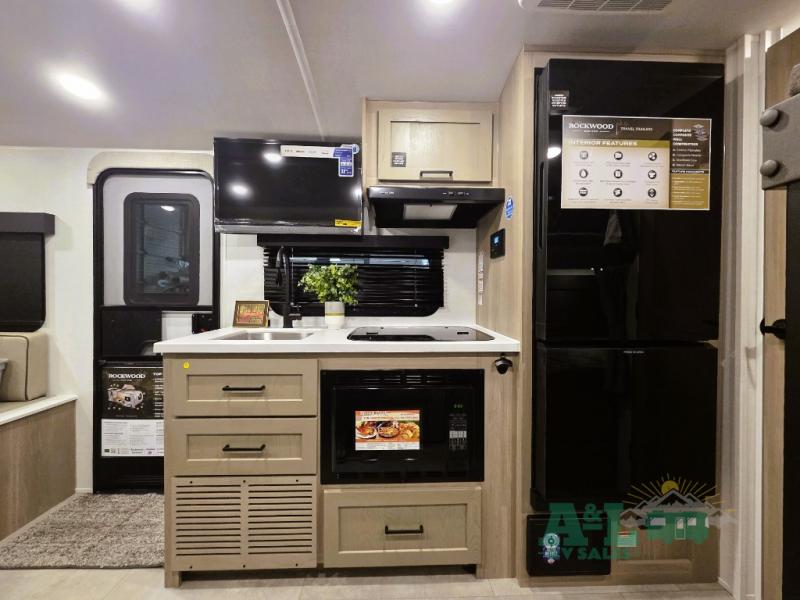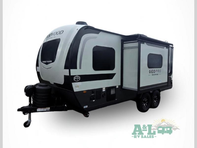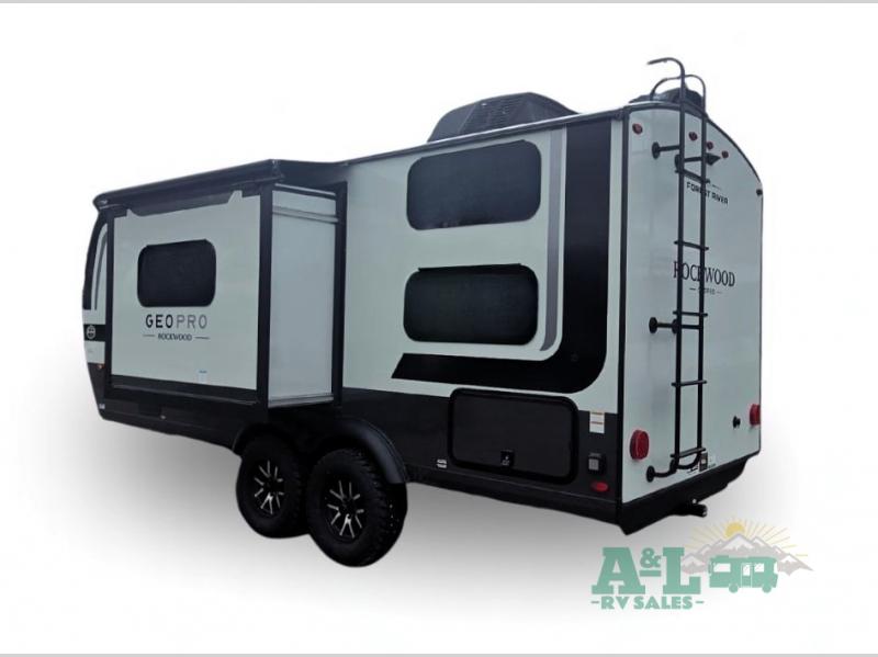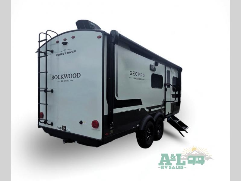 With any Rockwood GEO Pro travel trailer by Forest River you will enjoy easy towing, durable construction, and off-road capabilities with larger laminated roof! Each model is constructed with complete composite wall construction for added strength and durability, and Dexter® axles that will make towing easier than ever. Inside, you'll find sleek back up camera prep for added security, a refrigerator and a microwave, plus many other interior amenities that will make you feel at home on the road.