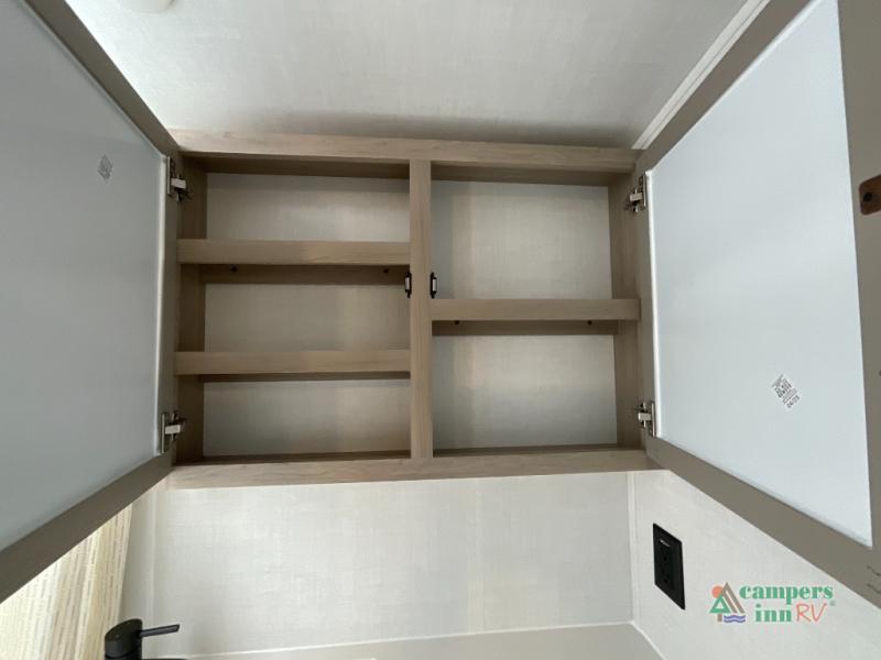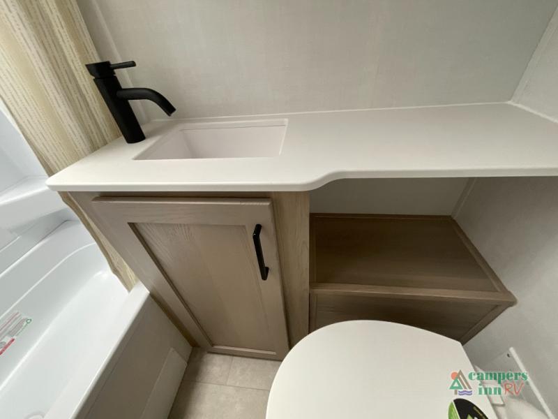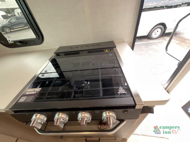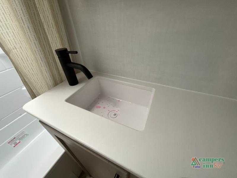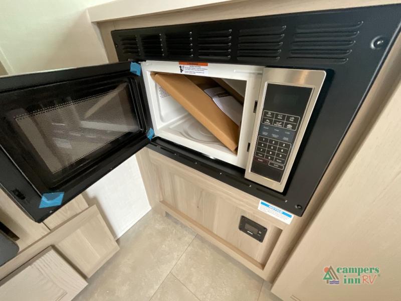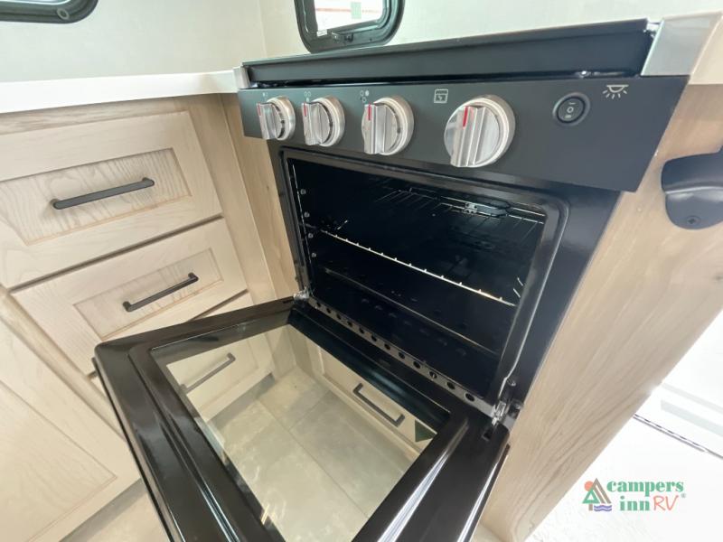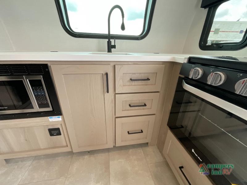 This compact but powerful travel trailer is loaded with features that make every trip easy and exciting. With an aerodynamic design and a GVWR under 5,000 lbs, it's towable by many SUVs and small trucks, giving you more flexibility on the road. The front kitchen layout offers a surprising amount of counter space and storage—rare for a trailer this size.