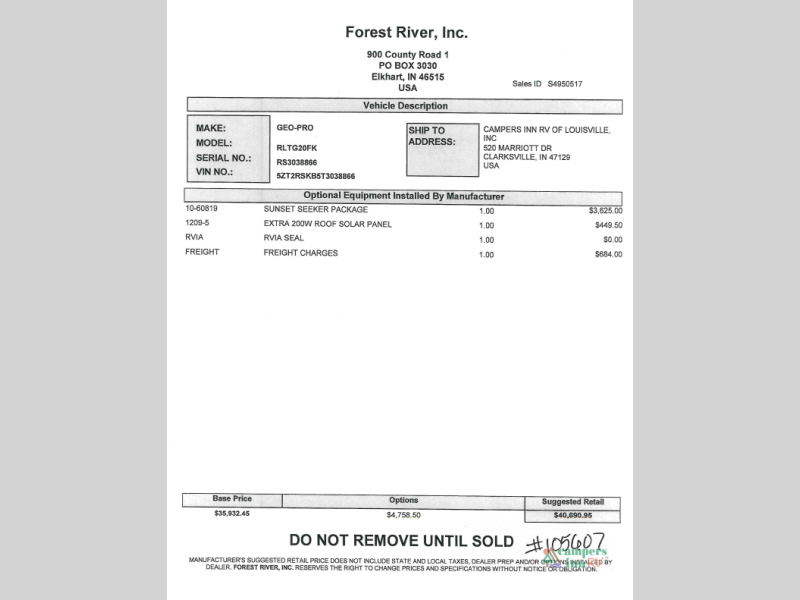 Forest River Rockwood Geo Pro G20FK Travel Trailer For Sale