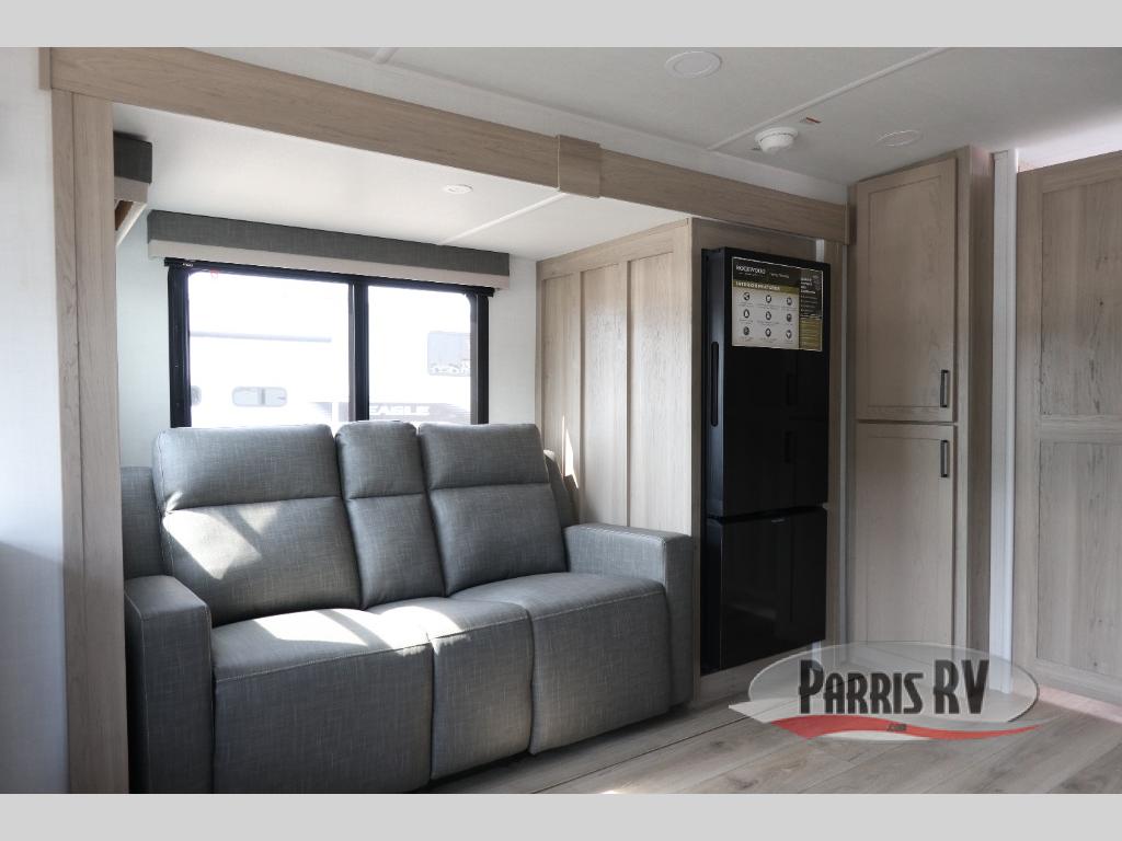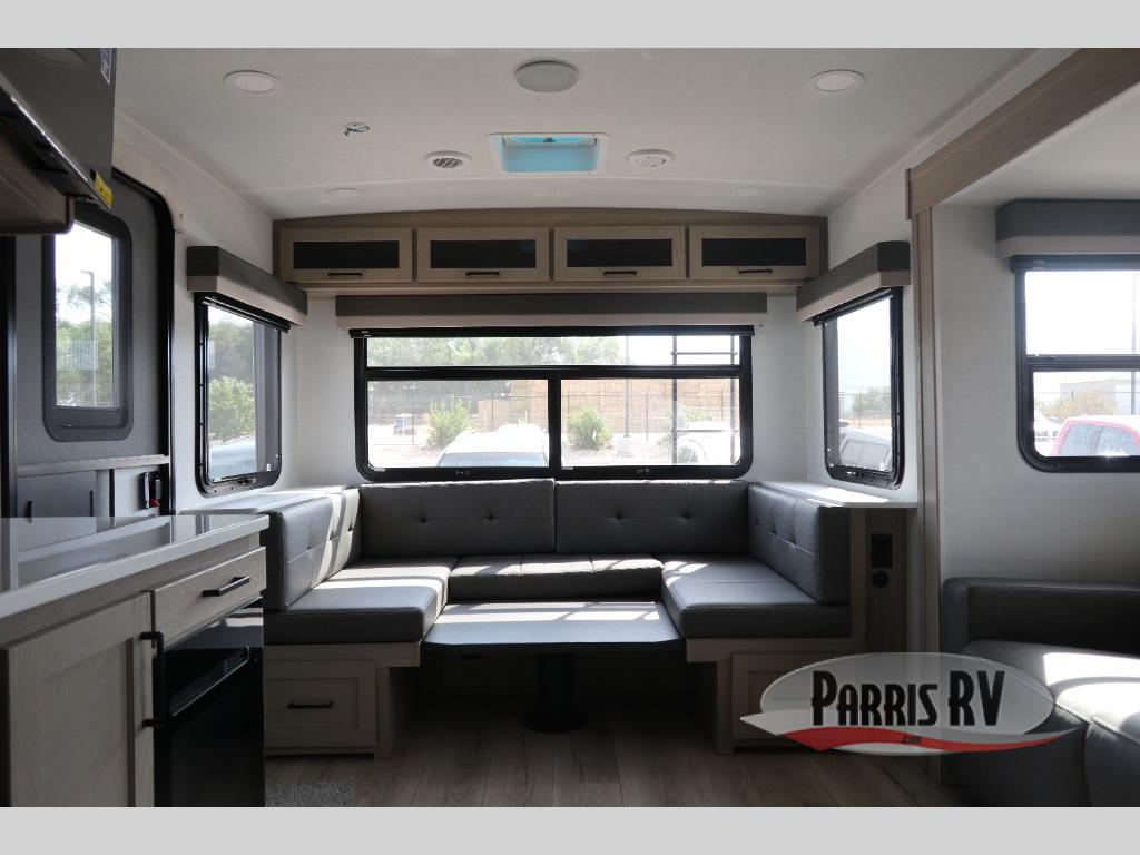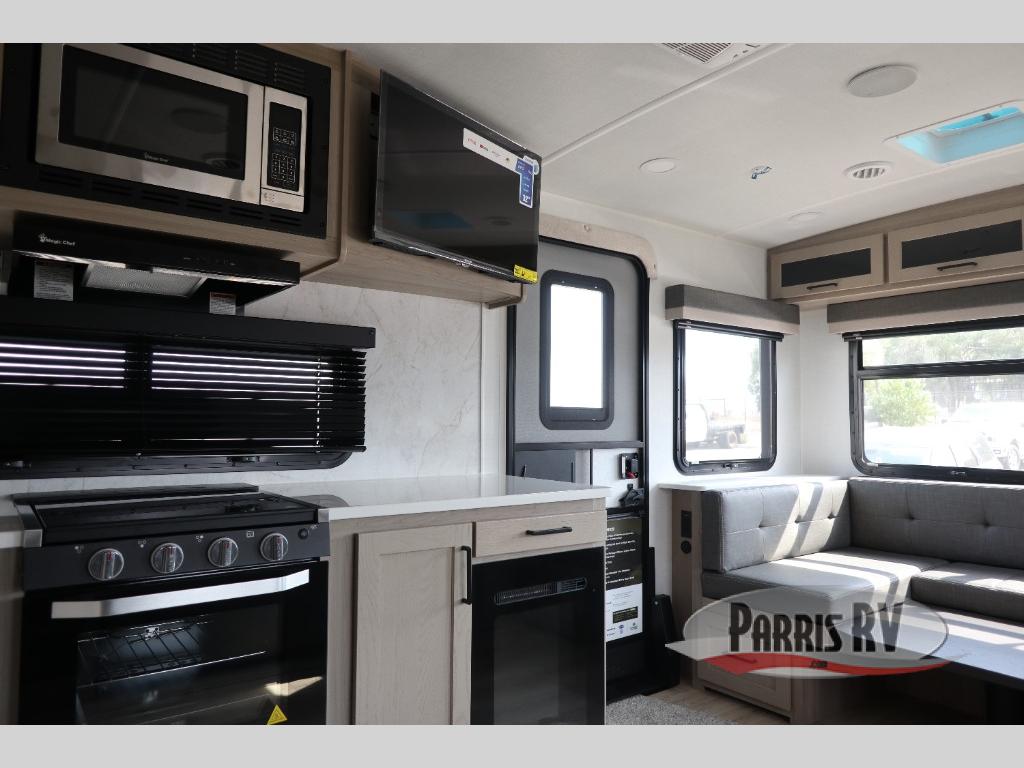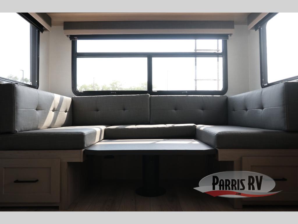 This double slide out travel trailer is perfect for weekend trips or extended stays! Your crew can play a game around the U-shaped dinette, relax on the theater seat across from the TV, or visit outdoors under the 21' awning. The fully-equipped kitchen allows you to make meals each day, and the walk-thru bath is easily accessible for everyone to use. This model also includes a front master bedroom with a queen bed, a wardrobe slide out, and one of the dual entry doors for convenience!
