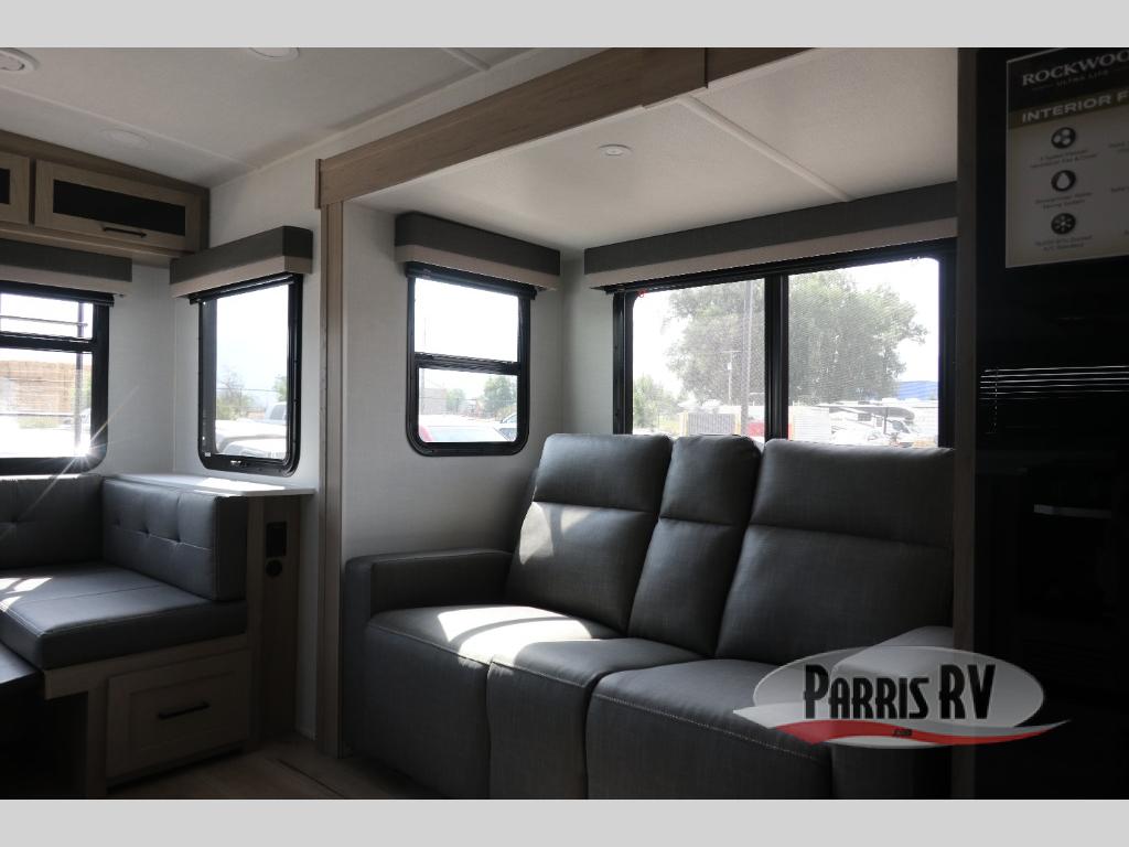 Each Rockwood Ultra Lite travel trailer by Forest River includes superior construction with a high gloss front cap, laminated white fiberglass sidewalls, and tinted frameless windows for a sleek look. The torsion axle, Rubber-Ryde suspension will make towing smooth and hassle-free, along with the nitrogen filled, Goodyear Endurance tires and the tire pressure monitor system. Interior comforts include designer kitchen backsplash, solid wood cabinet doors with hidden hinges, and night roller shades to name a few. Choose a Rockwood Ultra Lite travel trailer today!