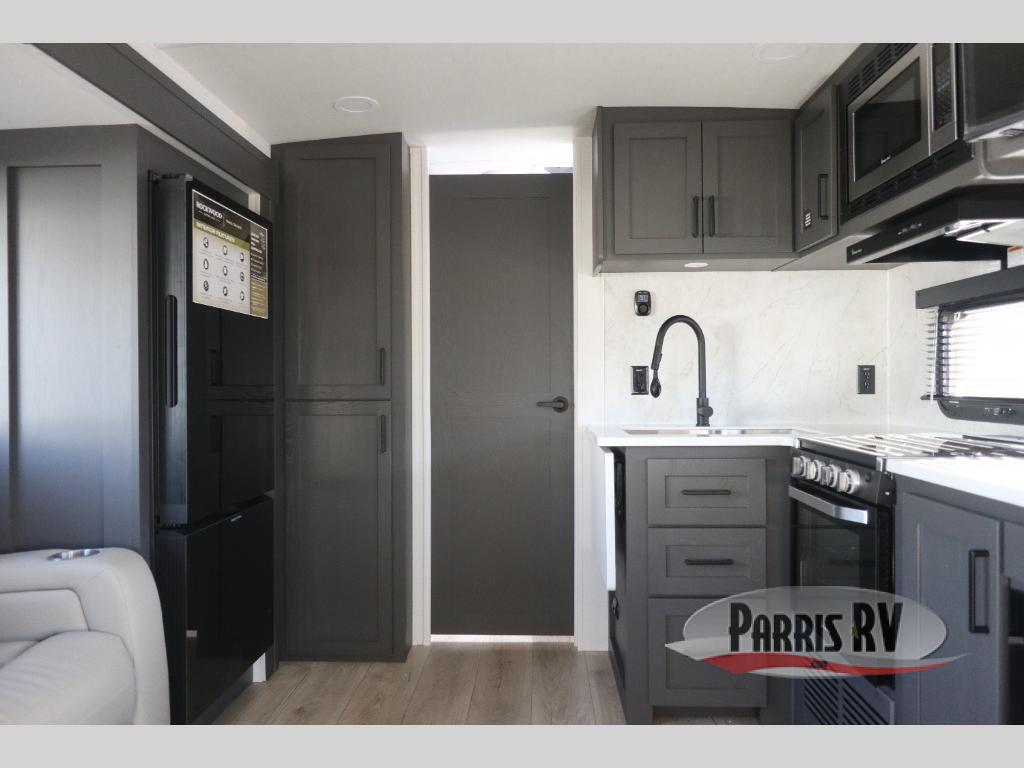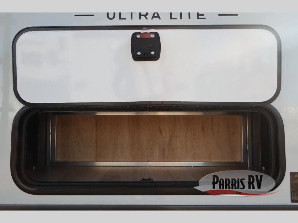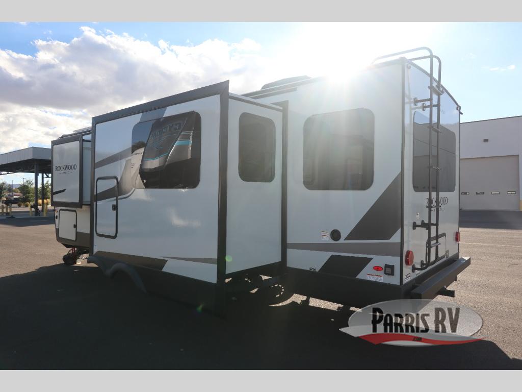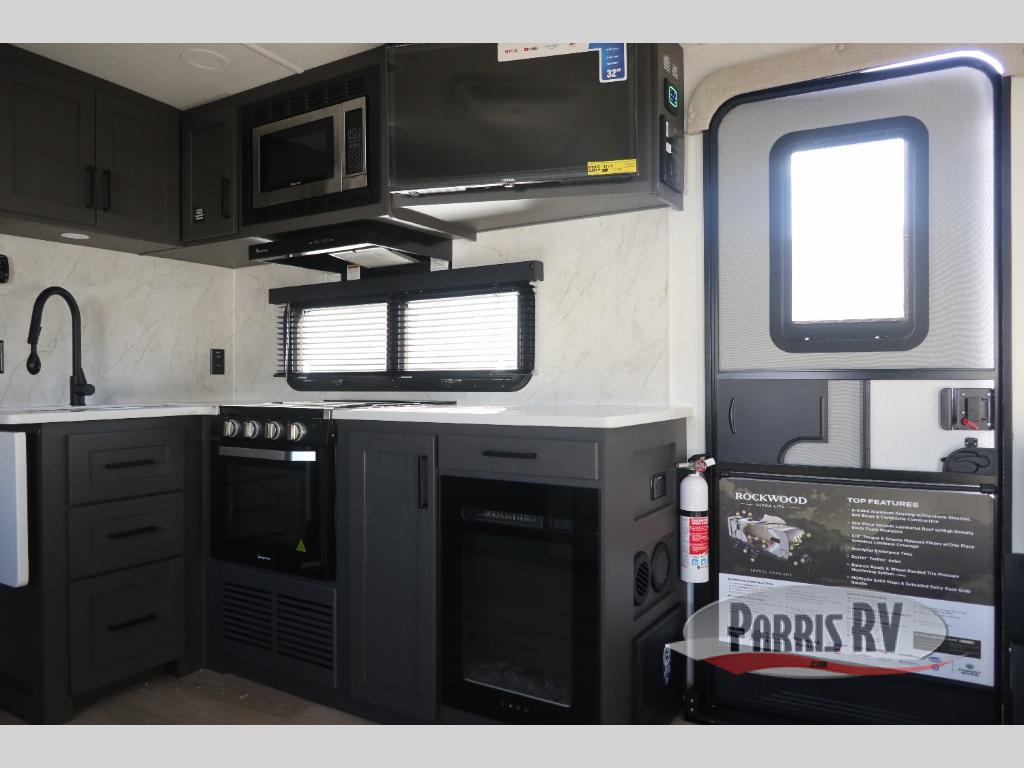 Each Rockwood Ultra Lite travel trailer by Forest River includes superior construction with a high gloss fiberglass cap, aluminum cage construction, and a power awning with LED lighting for a cozy and functional outdoor space. The torsion axle, power tongue jack will make towing smooth and hassle-free, along with the nitrogen filled, Goodyear Endurance tires and the tire pressure monitor system. Interior comforts include  kitchen sink with high rise faucet, hidden hinge cabinet doors, and roller shades to name a few. Choose a Rockwood Ultra Lite travel trailer today!