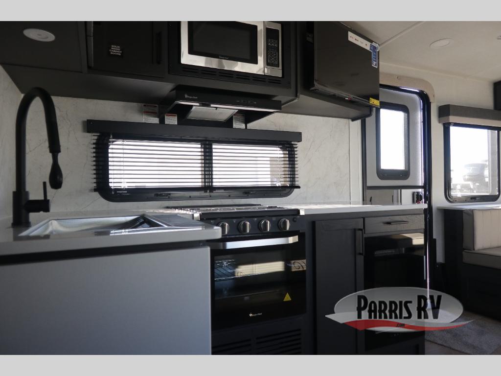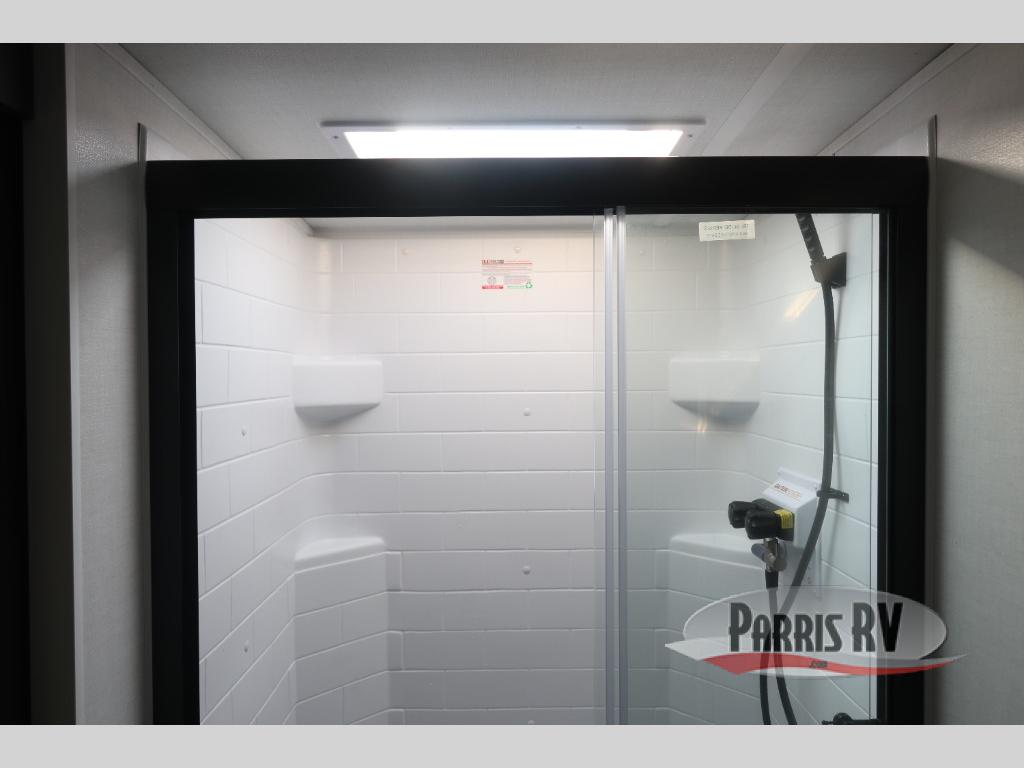 This double slide out travel trailer is perfect for weekend trips or extended stays! Your crew can play a game around the U-shaped dinette, relax on the theater seat across from the TV, or visit outdoors under the 21' awning. The fully-equipped kitchen allows you to make meals each day, and the walk-thru bath is easily accessible for everyone to use. This model also includes a front master bedroom with a queen bed, a wardrobe slide out, and one of the dual entry doors for convenience!
