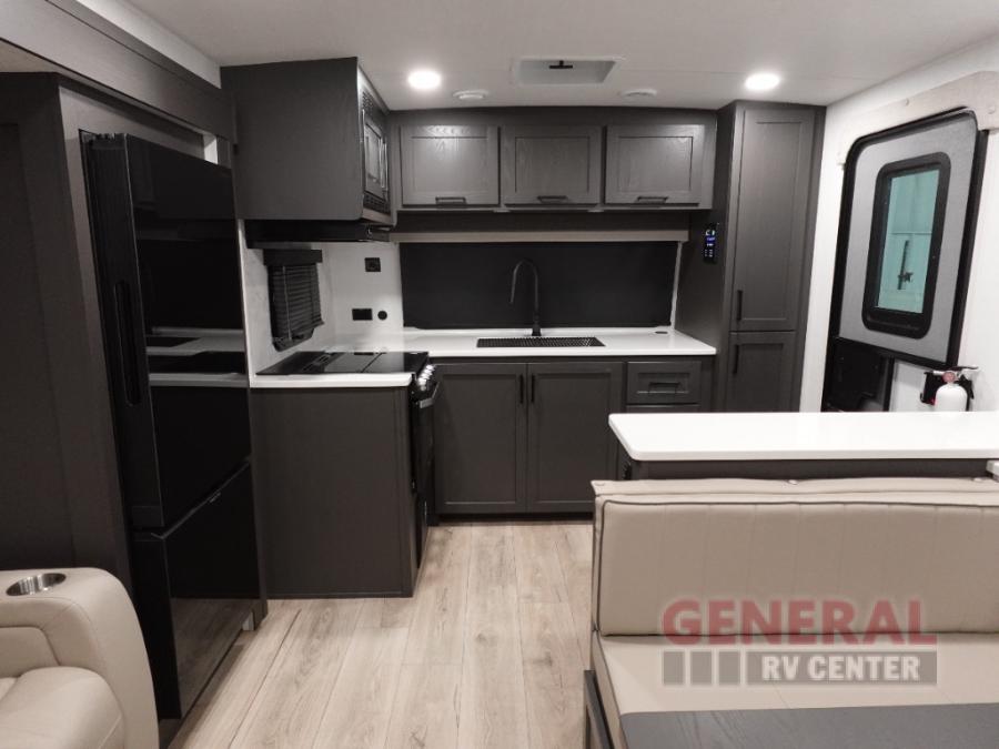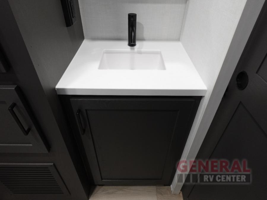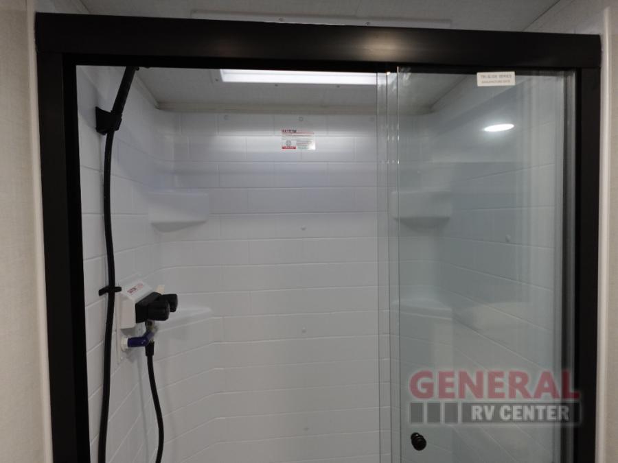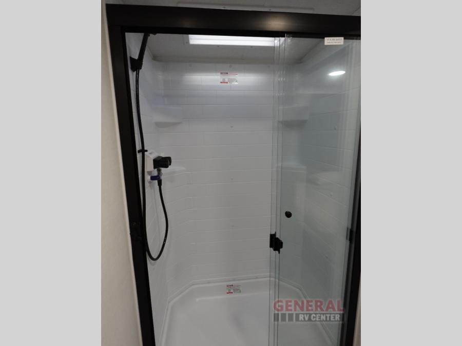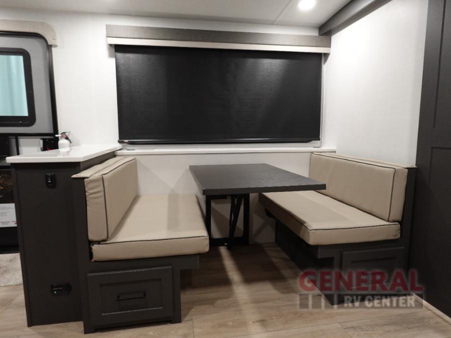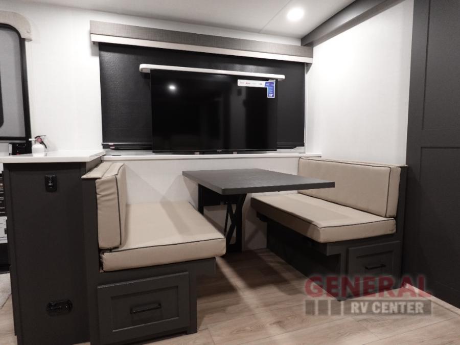 Wherever you decide to camp, you can be sure to enjoy your time in this double slide out trailer! The chef of your group will love having a front kitchen with generous counter space plus an exterior griddle when the weather is nice. There is also a 21' awning outdoors, along with Solid Entry Steps, and dual entry doors! A 39" booth dinette provides a place to dine or play a card game after dinner, and the theater seat across from the 40" TV is perfect for movie night. The walk-thru bath leads to the rear master bedroom where you'll find a queen bed, a large wardrobe, and a TV option if you enjoy shows in bed!