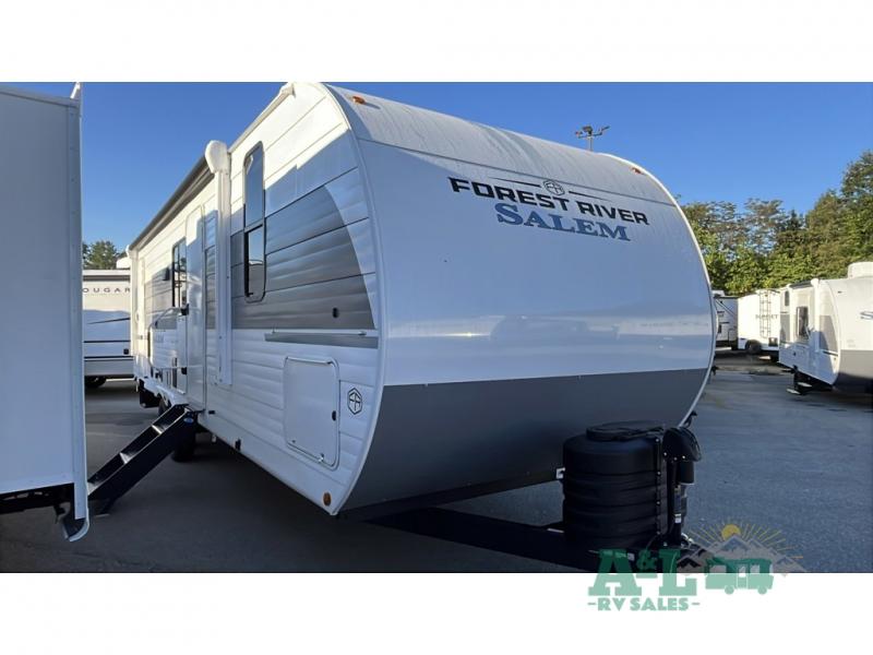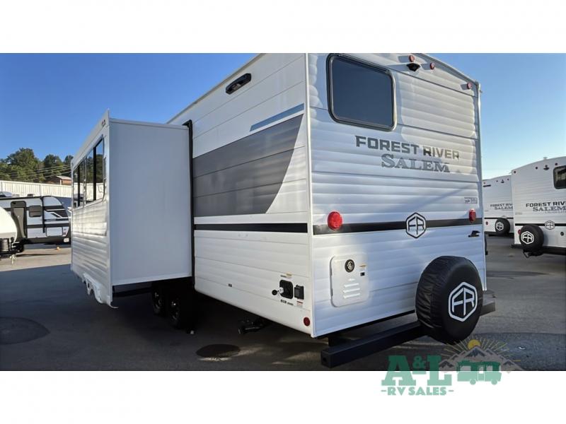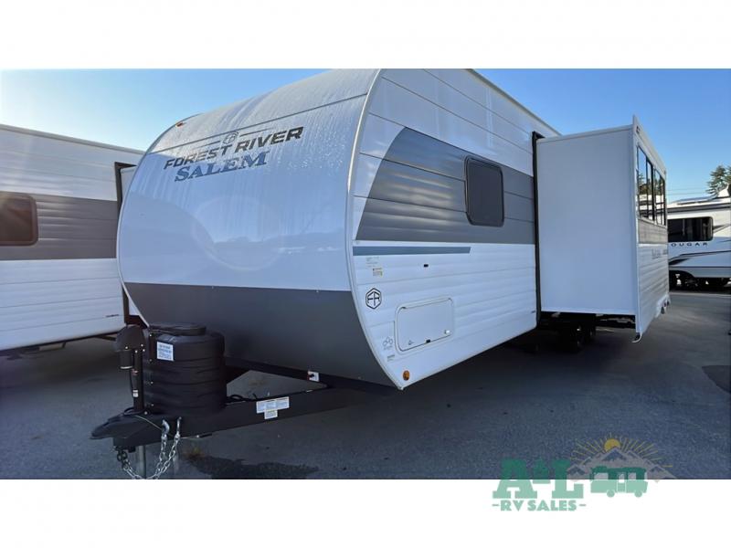The Salem travel trailers are packed with hassle-free camping amenities! There are a variety of floorplans to choose from between three different regions. The heated and enclosed Accessibelly will help protect against the elements and debris during transport, and the exterior retro/metal redesign is sure to be eye-catching! There are stylish roller shades inside, along with updated backsplash, elegant curtain rods and curtains, plus many more interior comforts! Choose a Salem travel trailer today for quality and value!