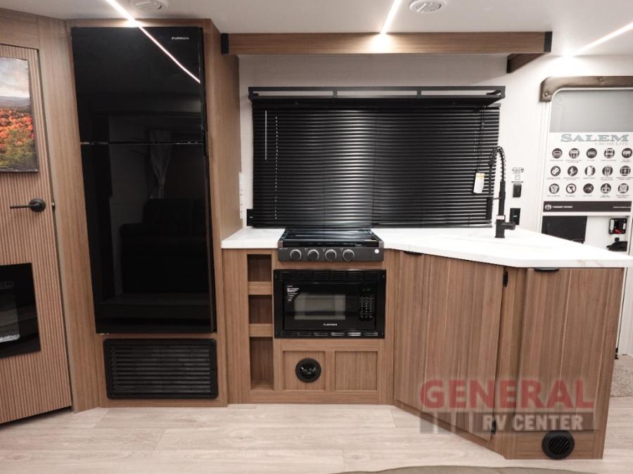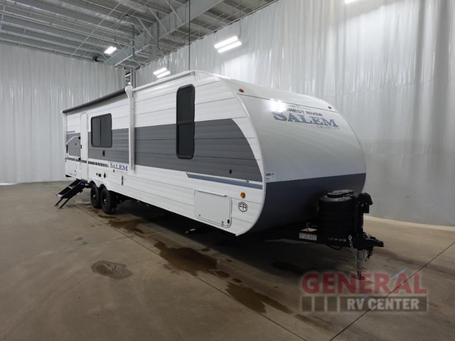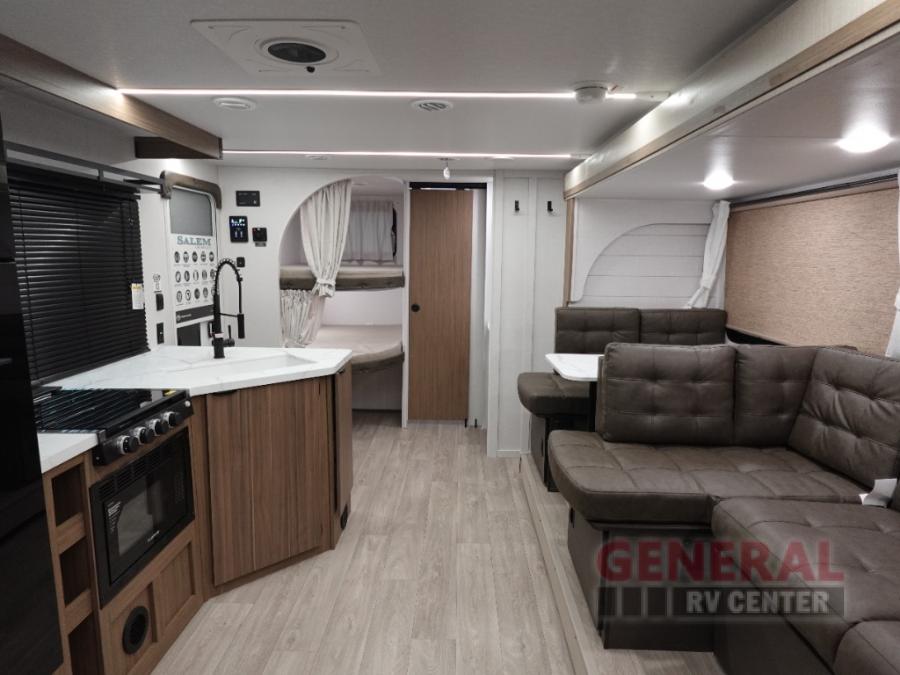 The Salem Cruise Lite travel trailers and toy haulers are value-minded units packed with great camping features! There are a variety of floorplans to choose from between two different regions. The enclosed Accessibelly will help protect against the elements and debris during transport, and the exterior retro/metal redesign is sure to be eye-catching! There are stylish roller shades inside, along with updated backsplash, elegant curtain rods and curtains, plus many more interior comforts! Choose a Salem Cruise Lite today for quality and value!