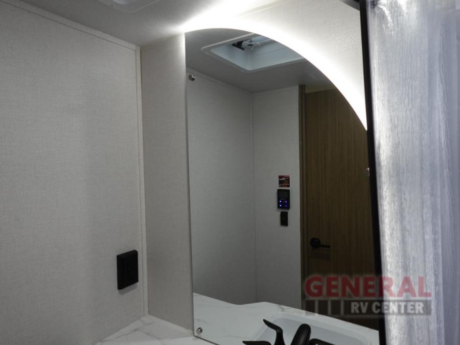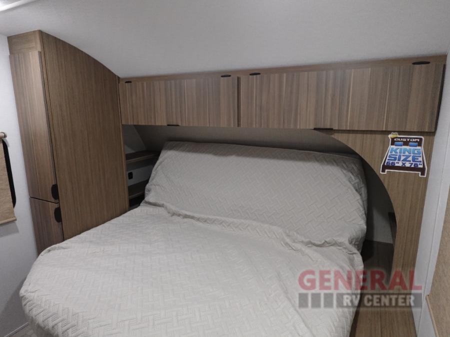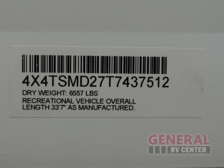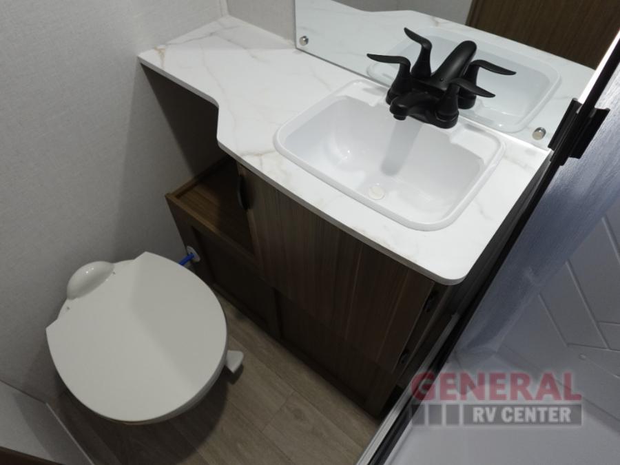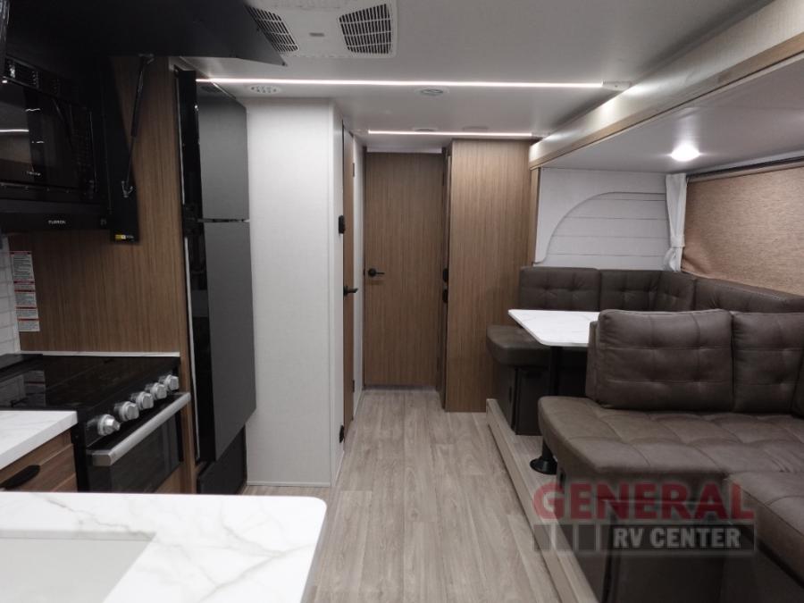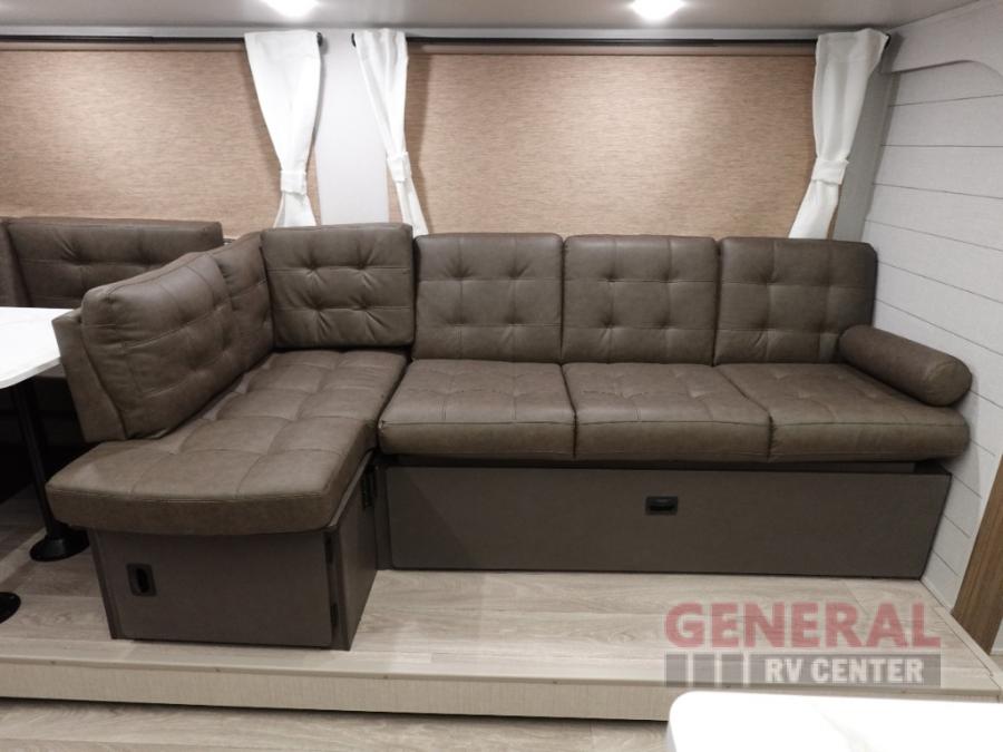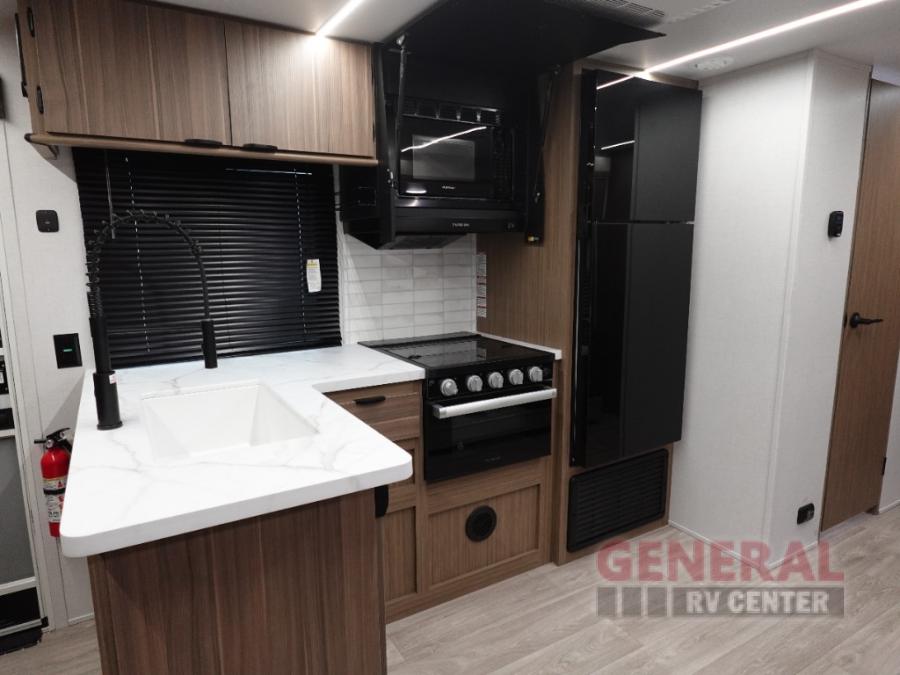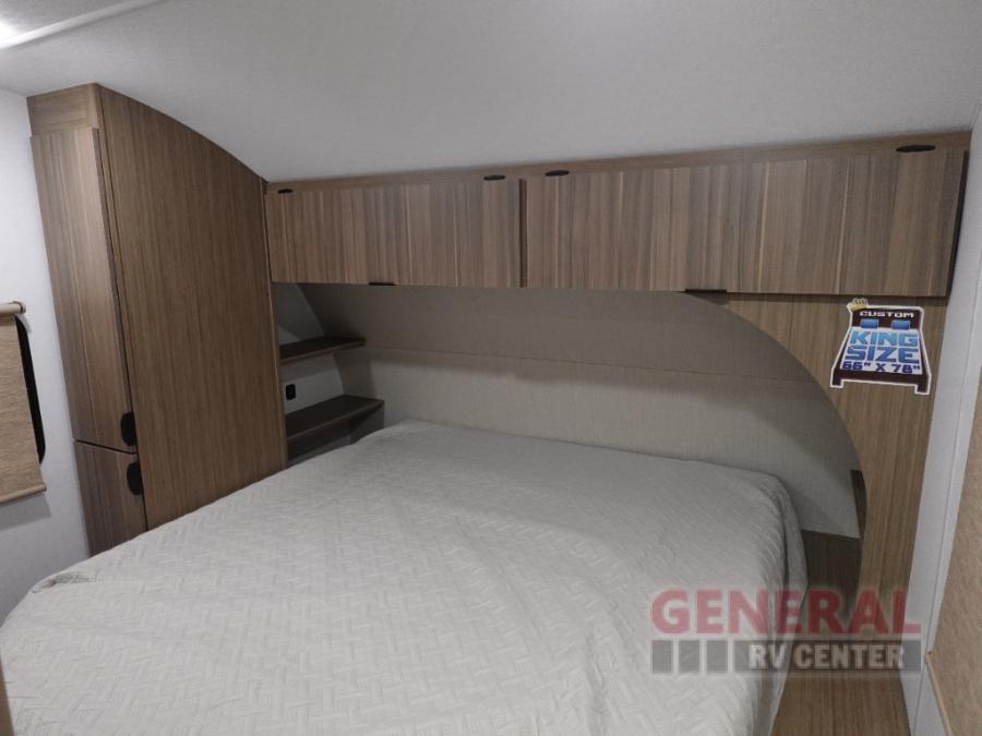 This travel trailer is new to the lineup and offers a large amount of versatility! The rear private bunkhouse has two 30" x 74" Versa-bunks and a Versa-queen bed so that more can join in on the camping fun. Start each morning feeling clean and fresh after showering in the walk-in shower with fiberglass surround then head to the front private bedroom to change. The kitchen has an oversized refrigerator to keep your perishables fresh, a cooktop for meals, and a U-shaped dinette for dining, game time, or just hanging out.