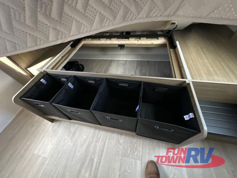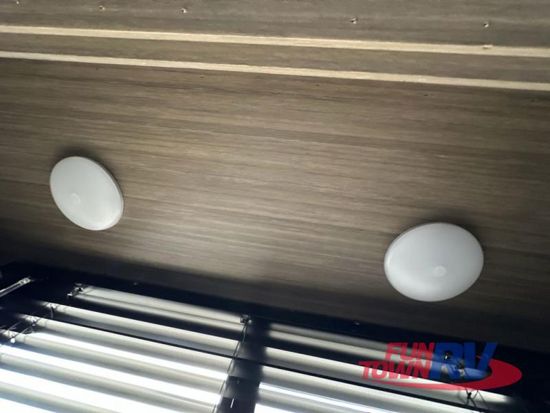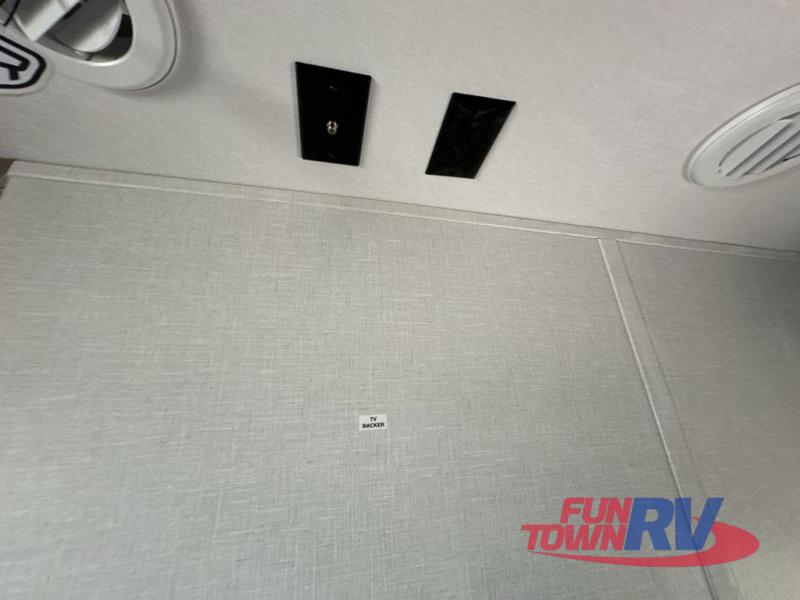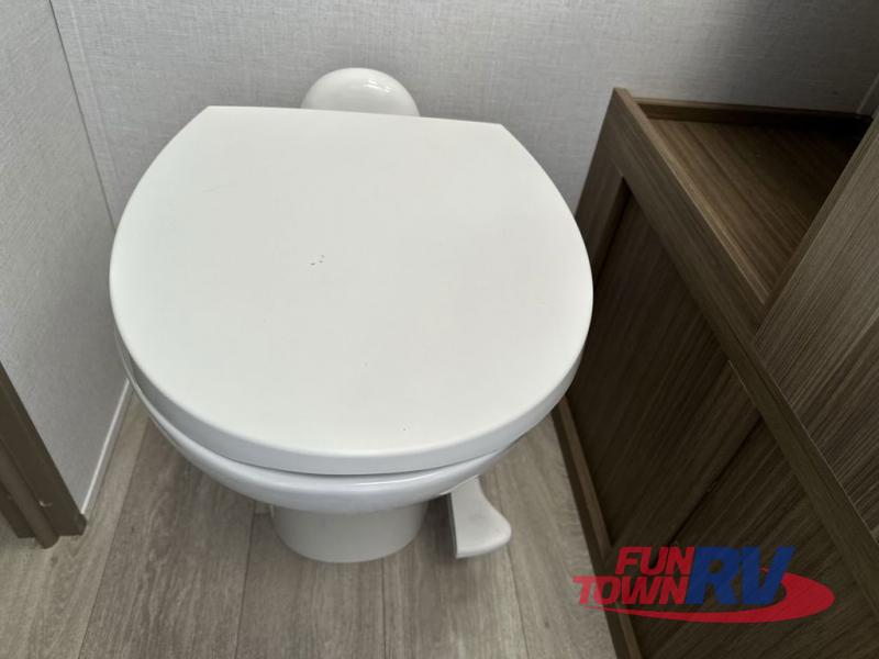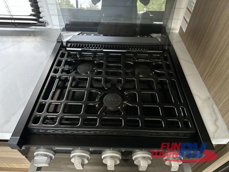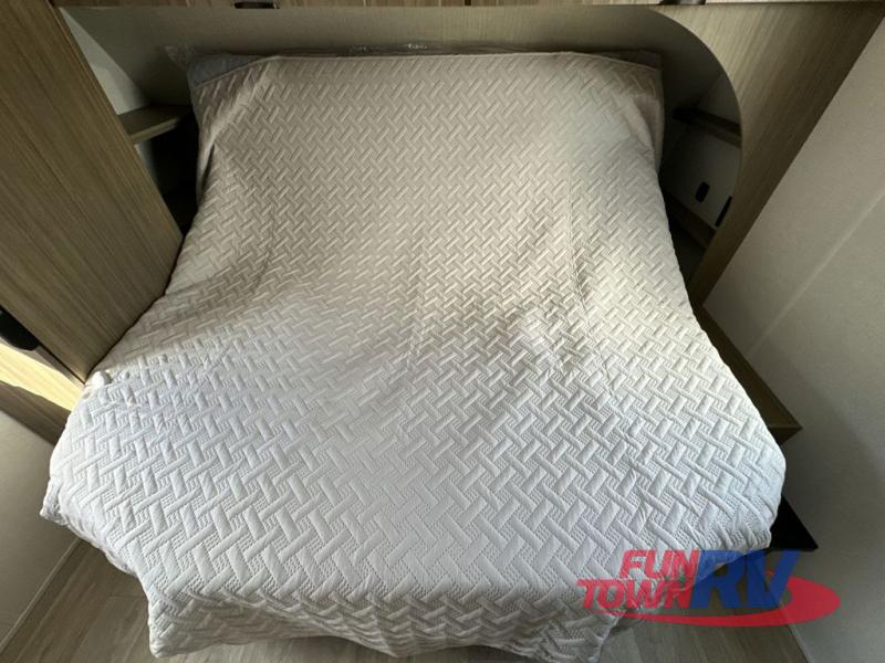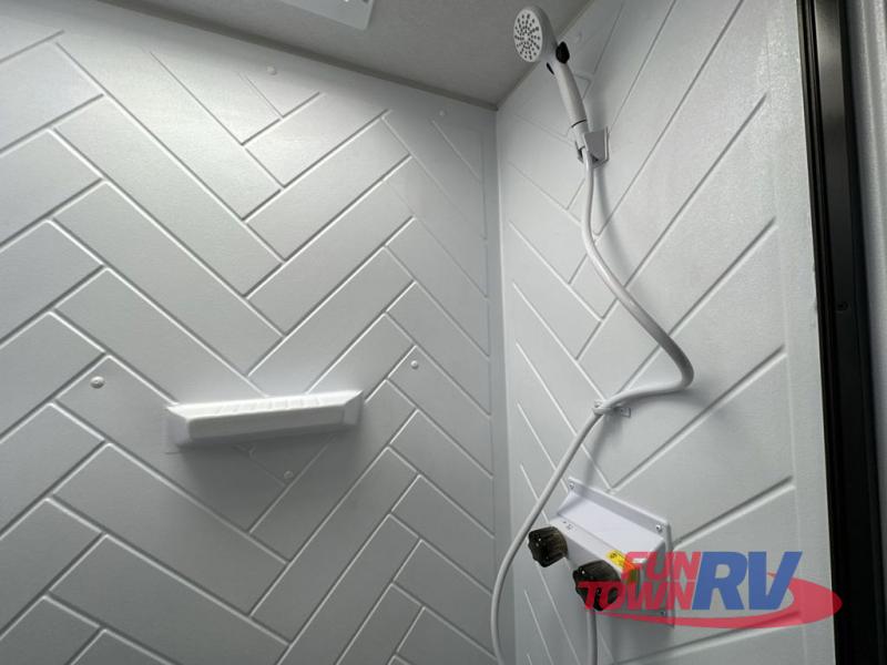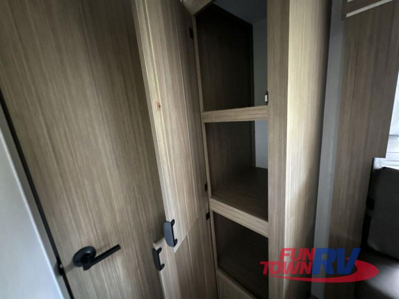 This travel trailer is new to the lineup and offers a large amount of versatility! The rear private bunkhouse has two 30" x 74" Versa-bunks and a Versa-queen bed so that more can join in on the camping fun. Start each morning feeling clean and fresh after showering in the walk-in shower with fiberglass surround then head to the front private bedroom to change. The kitchen has an oversized refrigerator to keep your perishables fresh, a cooktop for meals, and a U-shaped dinette for dining, game time, or just hanging out.