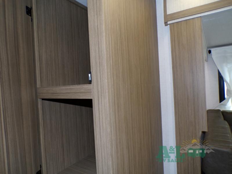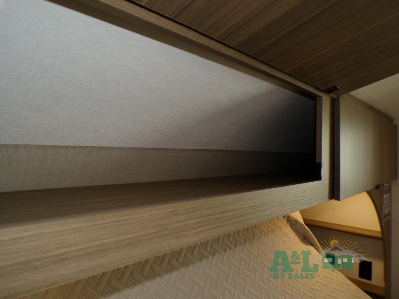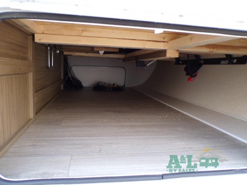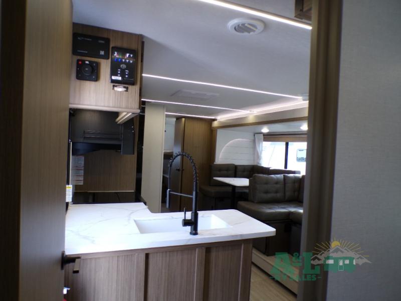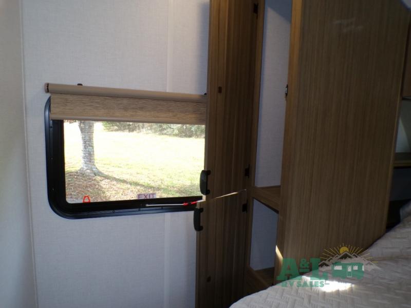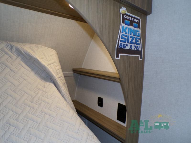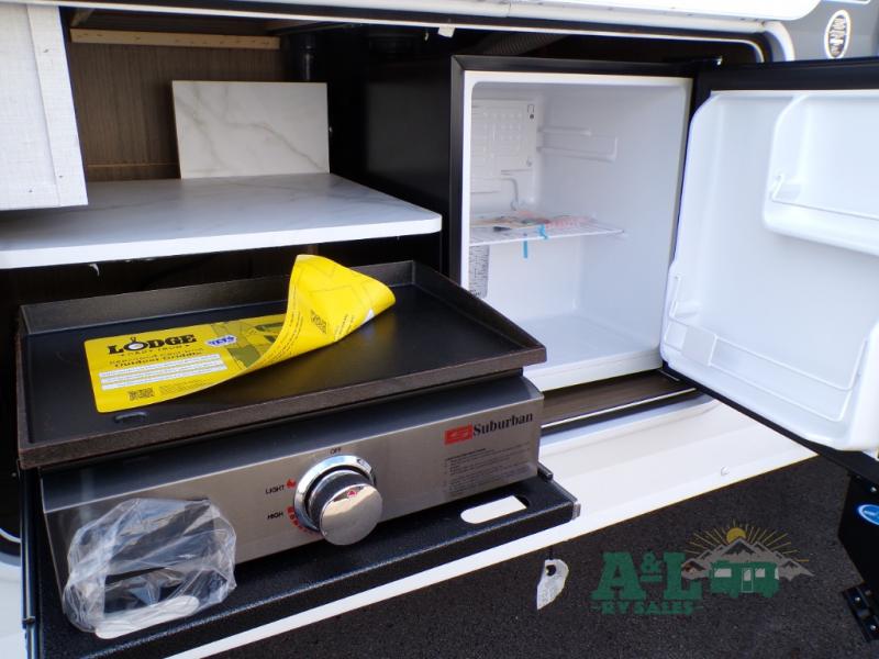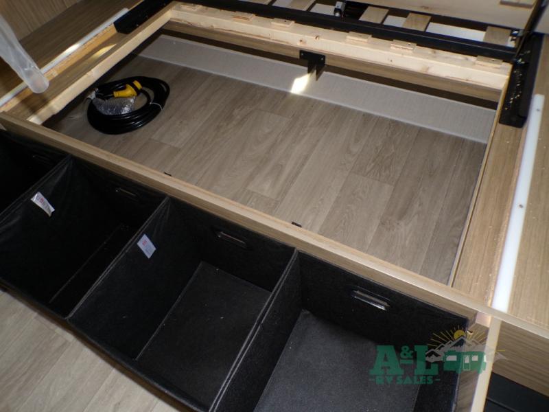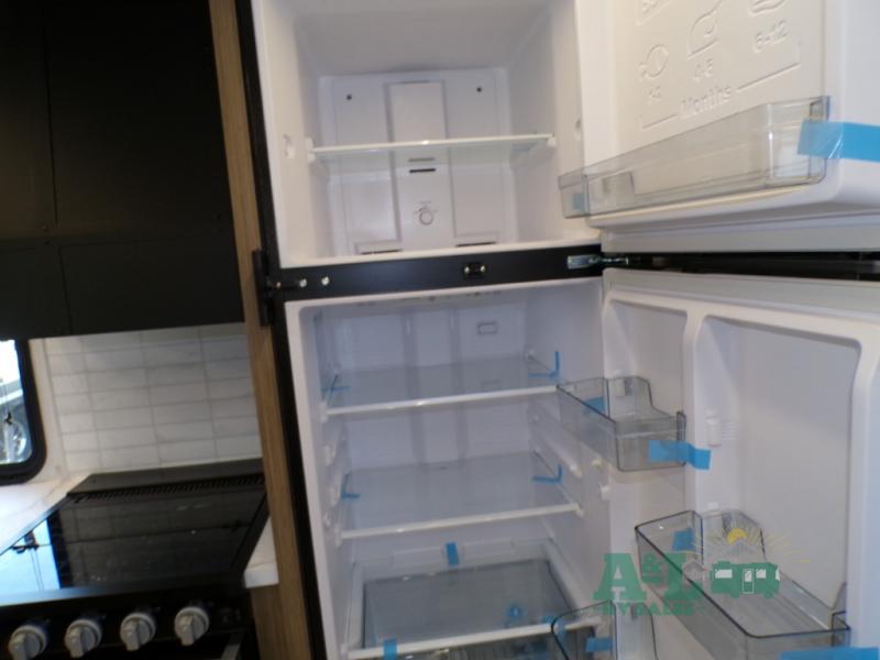 This travel trailer offers a large amount of versatility! The rear private bunkhouse has two 30" x 74" bunks and a sofa bed below that can transform into a bed so more can join in on the camping fun. Start each morning feeling clean and fresh after showering in the full bathroom then head to the front private bedroom to change. The kitchen has a 12V refrigerator to keep your eggs fresh, a cooktop to fry them up, and a U-shaped dinette to enjoy them at. What better way to wind down your nights than by relaxing on the Versa Lounge or playing a game around the U-shaped dinette!