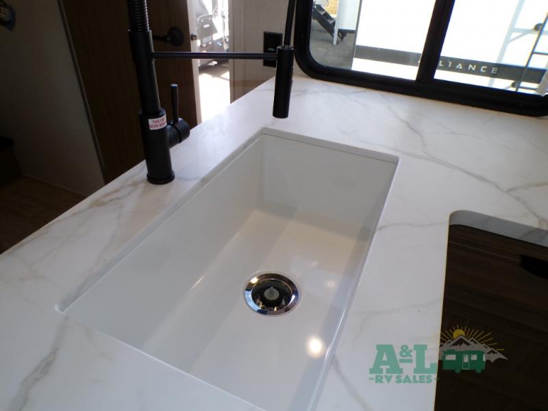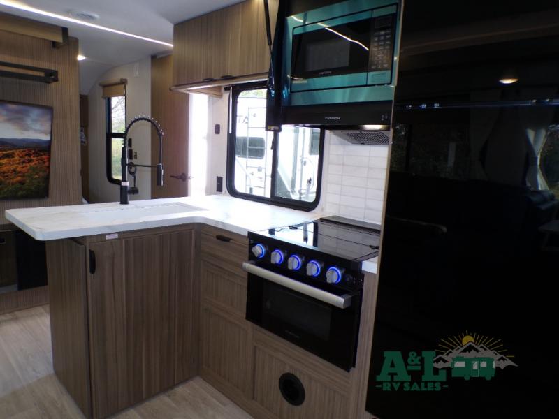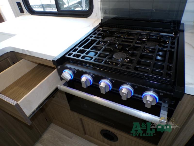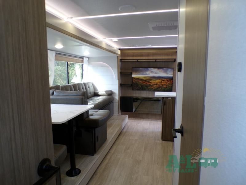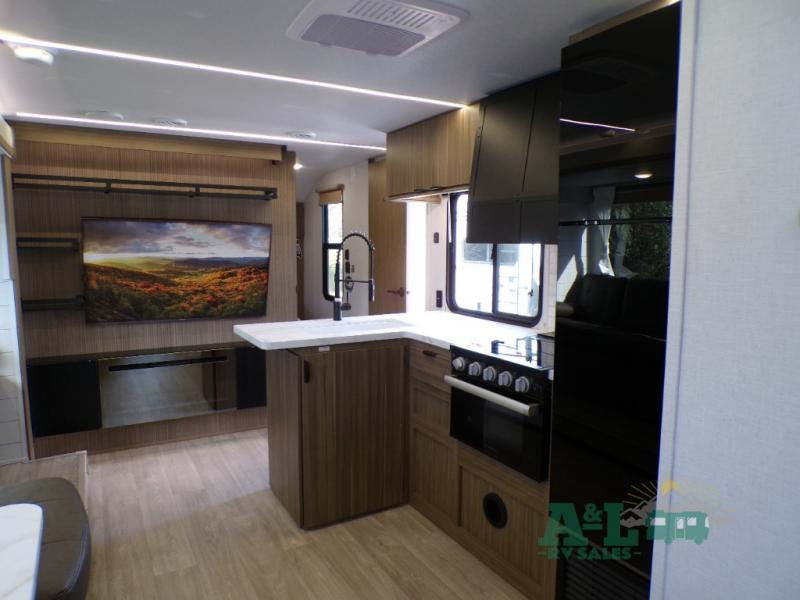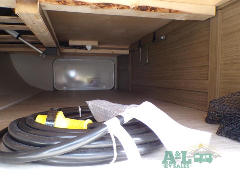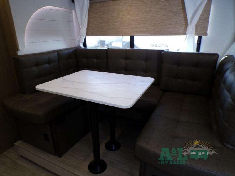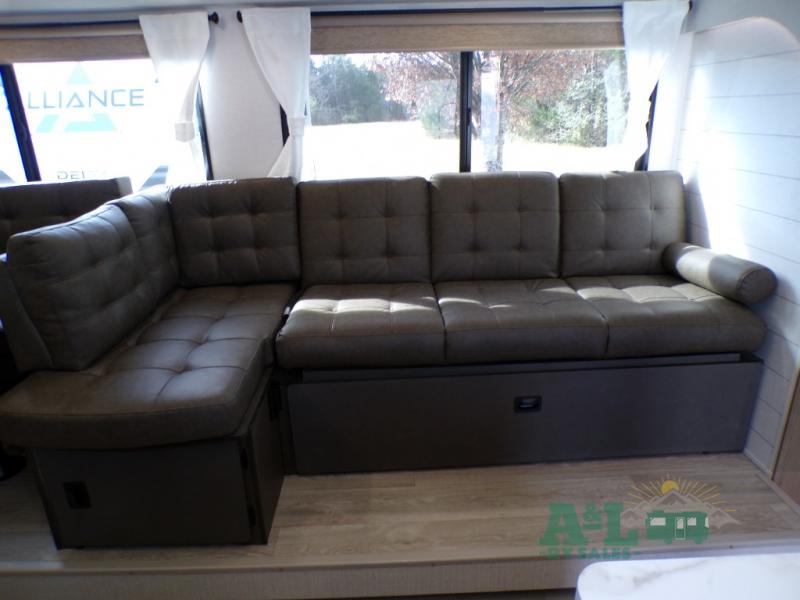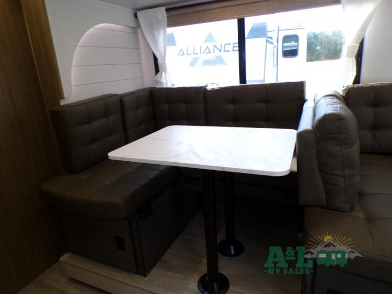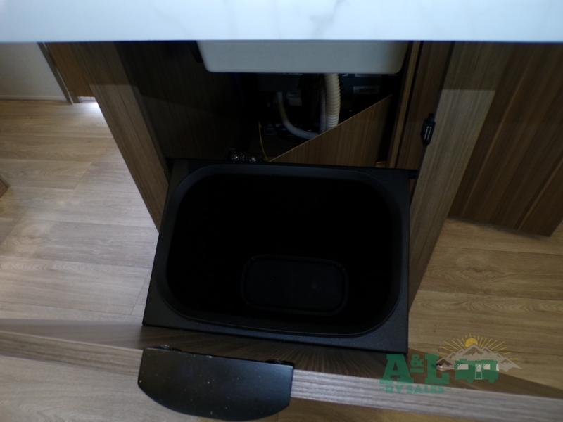 This travel trailer offers a large amount of versatility! The rear private bunkhouse has two 30" x 74" bunks and a sofa bed below that can transform into a bed so more can join in on the camping fun. Start each morning feeling clean and fresh after showering in the full bathroom then head to the front private bedroom to change. The kitchen has a 12V refrigerator to keep your eggs fresh, a cooktop to fry them up, and a U-shaped dinette to enjoy them at. What better way to wind down your nights than by relaxing on the Versa Lounge or playing a game around the U-shaped dinette!