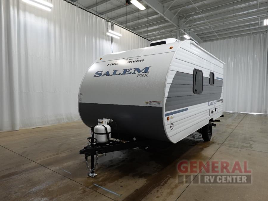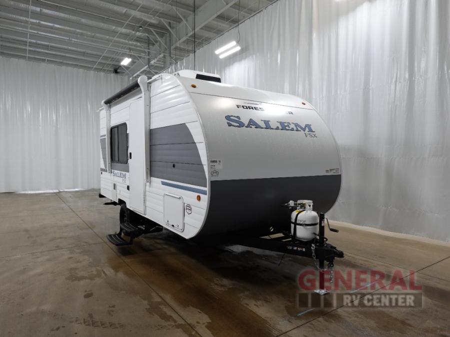 The Forest River Salem FSX travel trailers and toy hauler travel trailers are ultra comfortable and lightweight, perfect for first time or seasoned campers alike! You will love how easy it will be to relax with residential features that will make your space feel just like home, and the durable construction means you can enjoy your RV for years to come. There are a wide variety of floorplans to choose from, including couple's trailers, bunk models, and toy haulers, all with full bath and kitchen amenities and plenty of storage for all your gear!