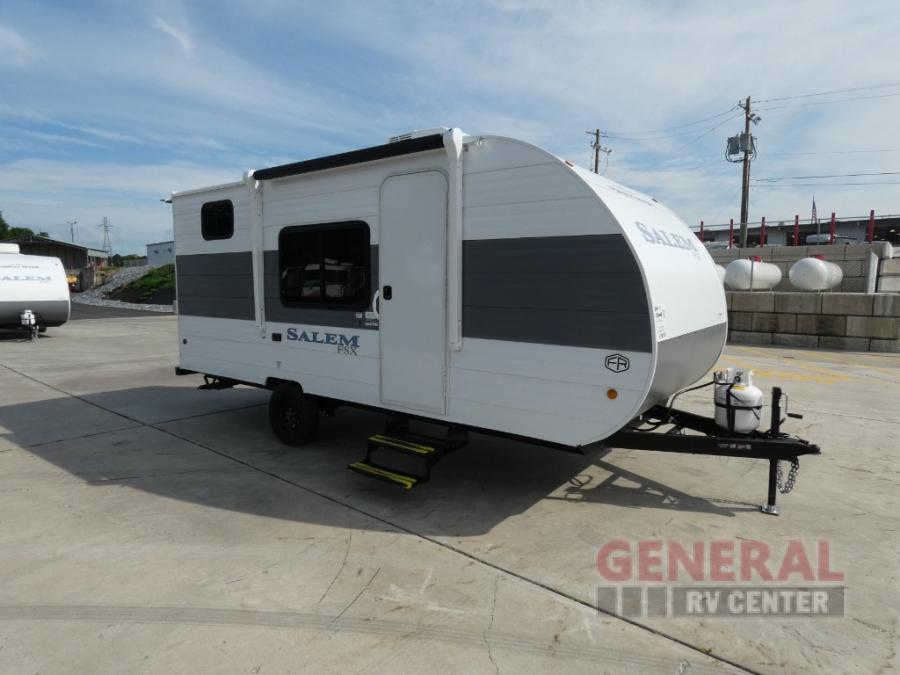 The Forest River Salem FSX travel trailers and toy hauler travel trailers are ultra comfortable and lightweight, perfect for first time or seasoned campers alike! You will love how easy it will be to relax with residential features that will make your space feel just like home, and the durable construction means you can enjoy your RV for years to come. There are a wide variety of floorplans to choose from, including couple's trailers, bunk models, and toy haulers, all with full bath and kitchen amenities and plenty of storage for all your gear!