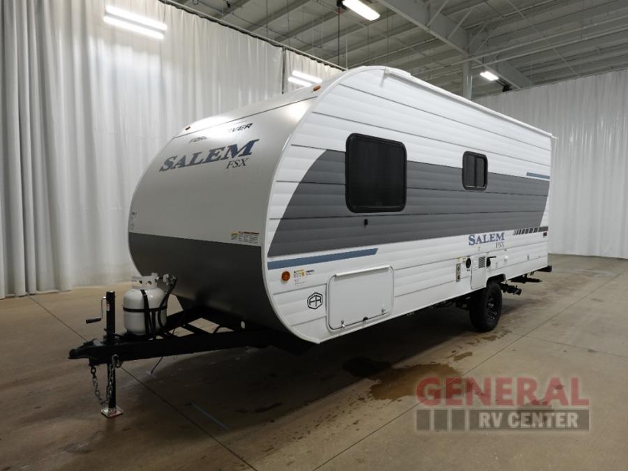 The Forest River Salem FSX travel trailers and toy hauler travel trailers are ultra comfortable and lightweight, perfect for first time or seasoned campers alike! You will love how easy it will be to relax with residential features that will make your space feel just like home, and the durable construction means you can enjoy your RV for years to come. There are a wide variety of floorplans to choose from, including couple's trailers, bunk models, and toy haulers, all with full bath and kitchen amenities and plenty of storage for all your gear!