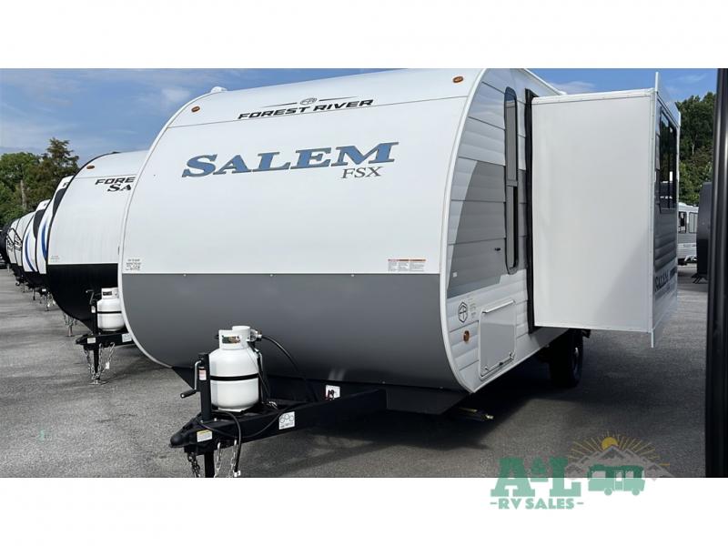The Forest River Salem FSX travel trailers and toy hauler travel trailers are ultra comfortable and lightweight, perfect for first time or seasoned campers alike! You will love how easy it will be to relax with residential features that will make your space feel just like home, and the durable construction means you can enjoy your RV for years to come. There are a wide variety of floorplans to choose from, including couple's trailers, bunk models, and toy haulers, all with full bath and kitchen amenities and plenty of storage for all your gear!