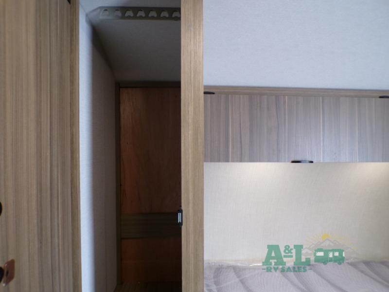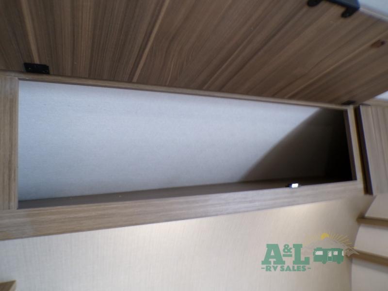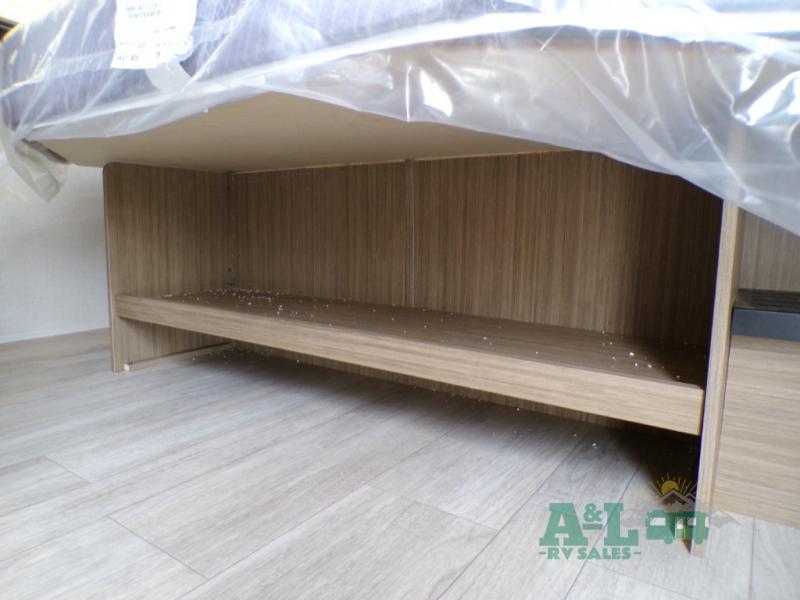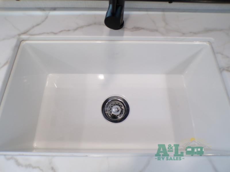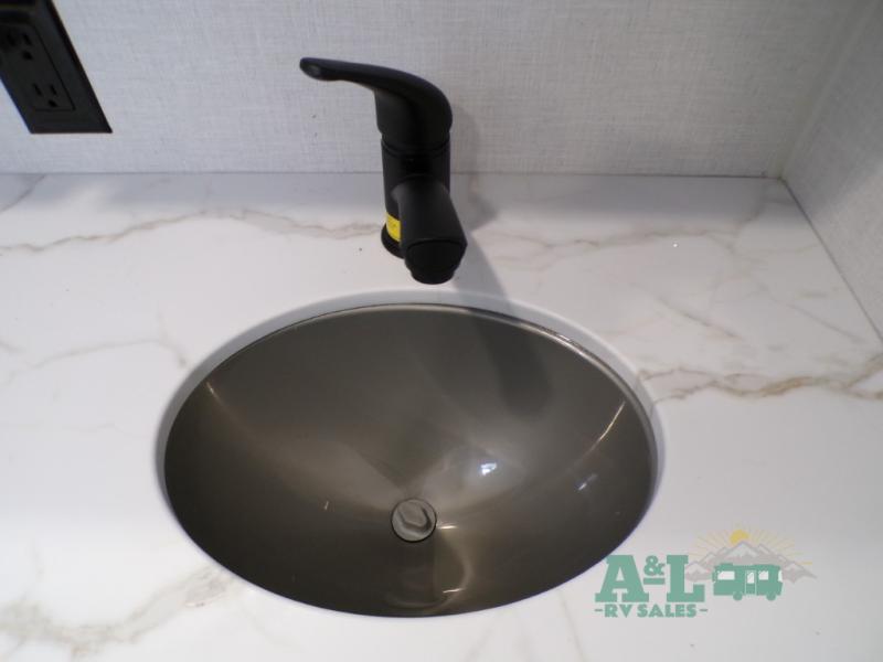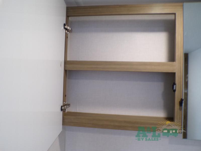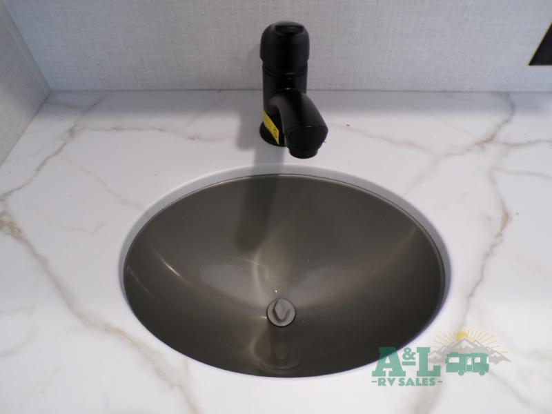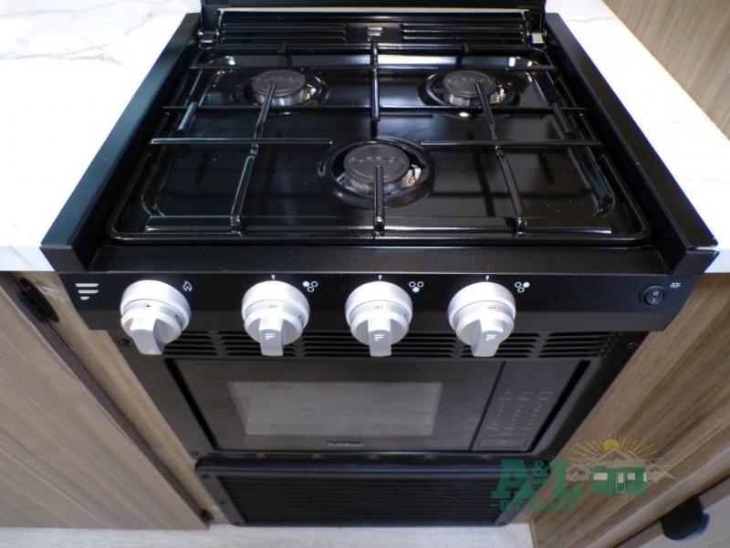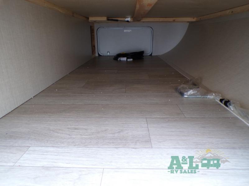 Camping is made easy in this travel trailer with at-home comforts! You'll have the front private bedroom with a king bed all to yourselves, and there are dual bedroom wardrobes to keep your space neat and clean. Any additional guests can sleep on the super lounge with a removable table. You will appreciate the full rear bath complete with a linen closet and dual bath sinks so you both can get ready for bed at once. And a full kitchen lets you whip up your best meals!
