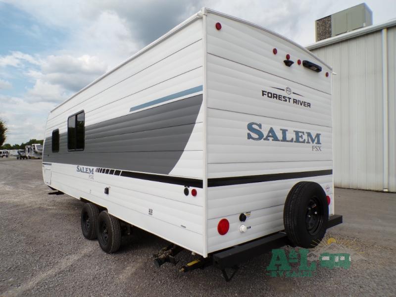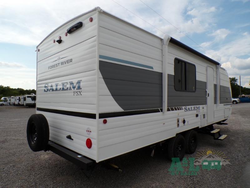 The Forest River Salem FSX travel trailers and toy hauler travel trailers are ultra comfortable and lightweight, perfect for first time or seasoned campers alike! You will love how easy it will be to relax with residential features that will make your space feel just like home, and the durable construction means you can enjoy your RV for years to come. There are a wide variety of floorplans to choose from, including couple's trailers, bunk models, and toy haulers, all with full bath and kitchen amenities and plenty of storage for all your gear!