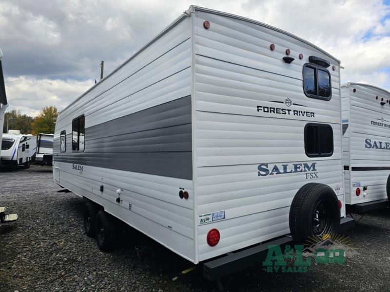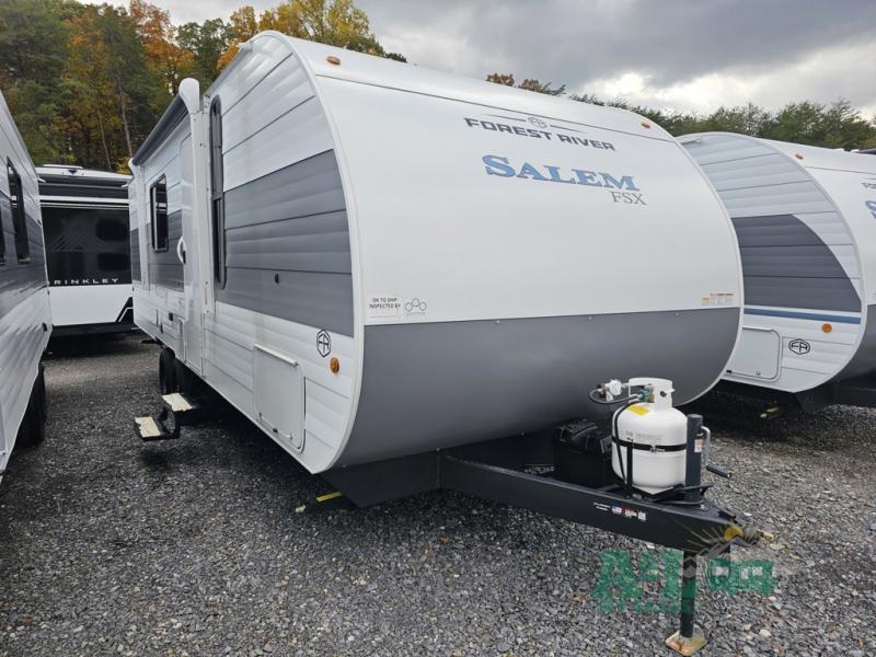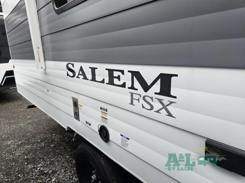 The Forest River Salem FSX travel trailers and toy hauler travel trailers are ultra comfortable and lightweight, perfect for first time or seasoned campers alike! You will love how easy it will be to relax with residential features that will make your space feel just like home, and the durable construction means you can enjoy your RV for years to come. There are a wide variety of floorplans to choose from, including couple's trailers, bunk models, and toy haulers, all with full bath and kitchen amenities and plenty of storage for all your gear!