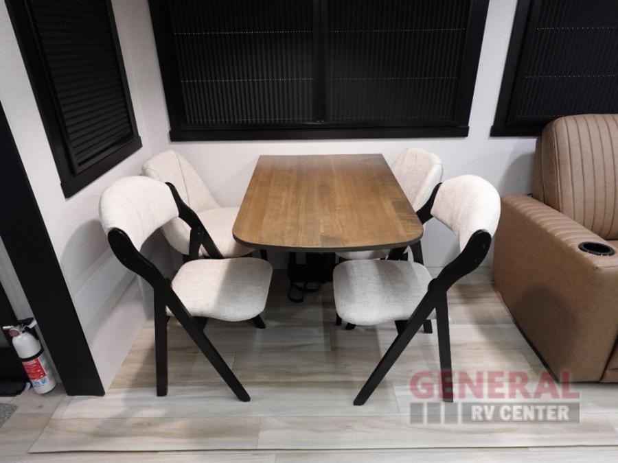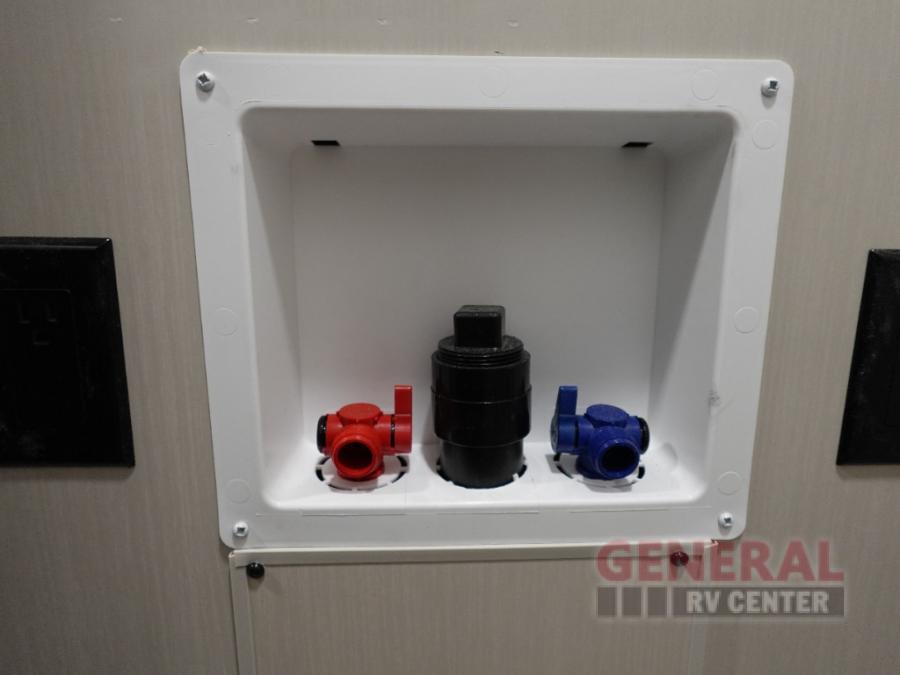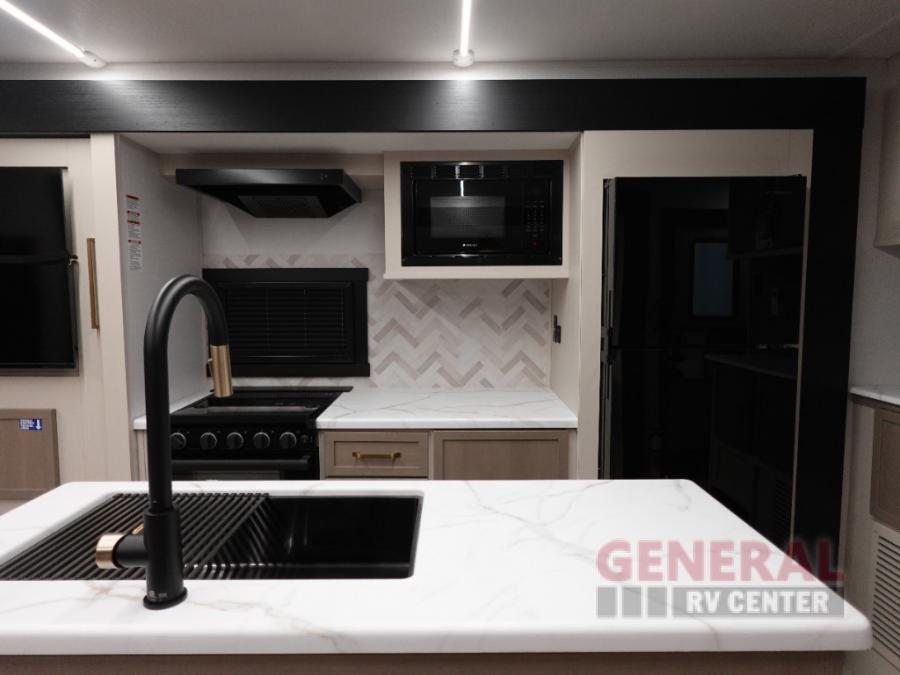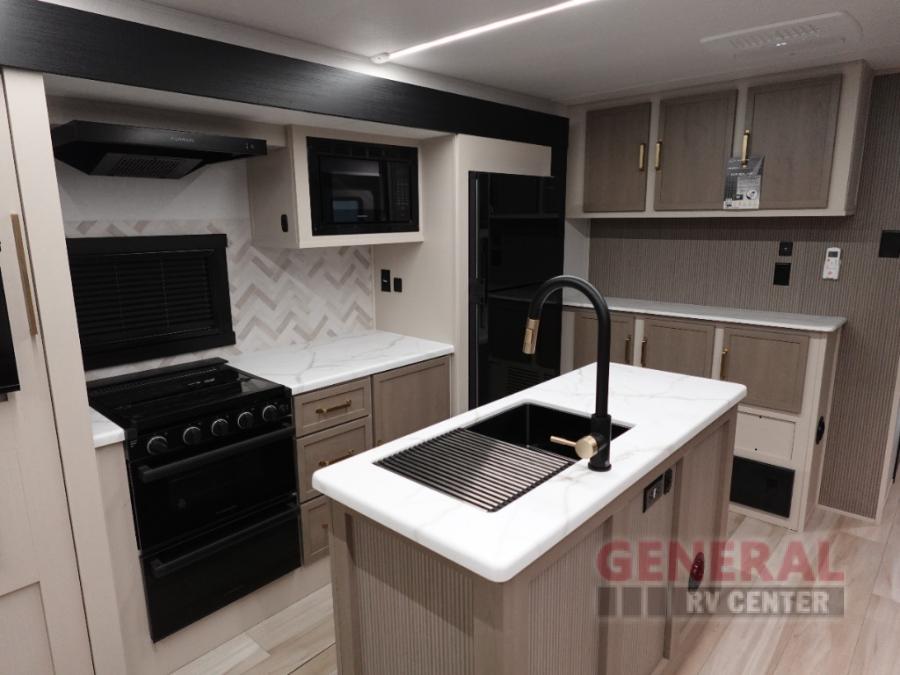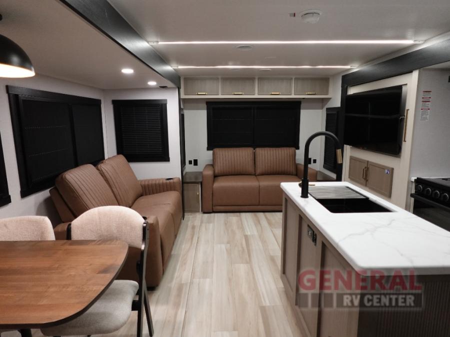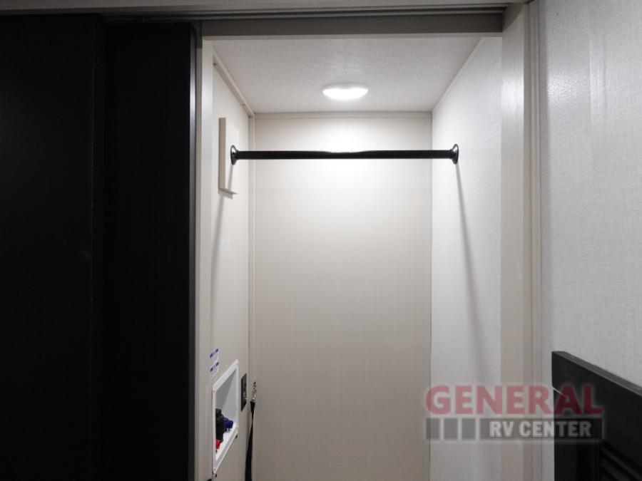 Step inside this luxurious travel trailer and see all that it has to offer! You will enjoy a good night's rest each night on the queen bed with Versa Tilt with wardrobes on either side to keep your clothes wrinkle free, and if you have a couple of guests then you can convert the rear tri-fold sofa into a sleeping space. The 30" x 36" walk-in shower with a skylight above invites you to take a hot, steamy shower after a fun-filled day outdoors. Once you're cleaned up, you can grab some leftovers from the 10 cu. ft. 12V black refrigerator and warm it up in the microwave. There is also theatre seating across from the 50" LED TV with a fireplace below!
