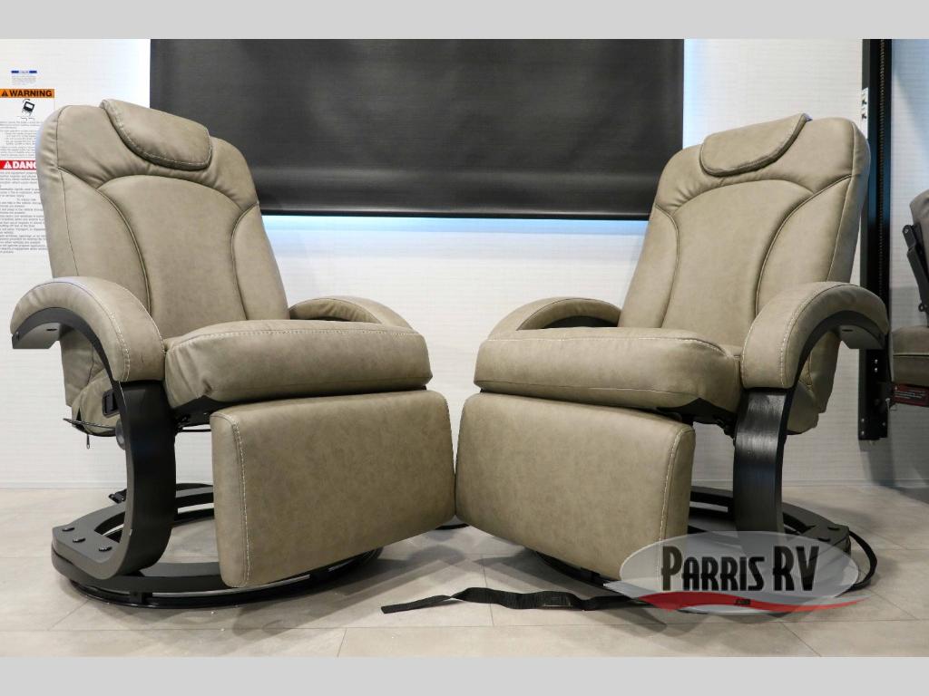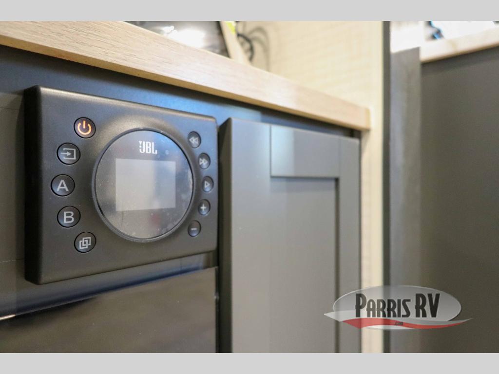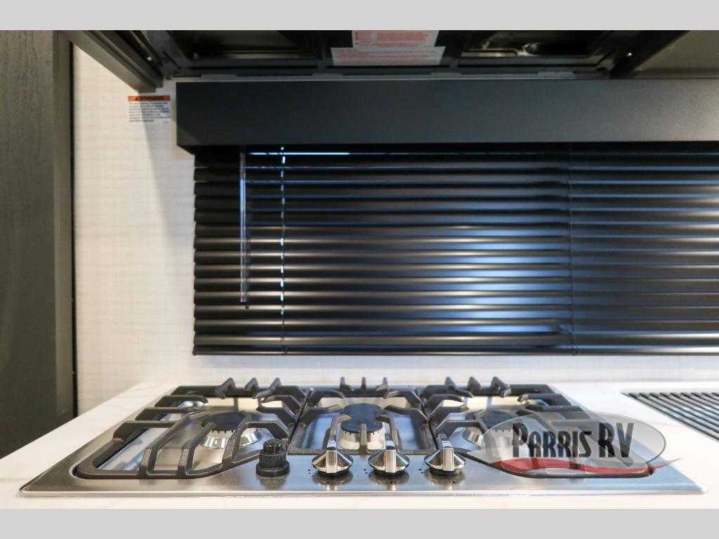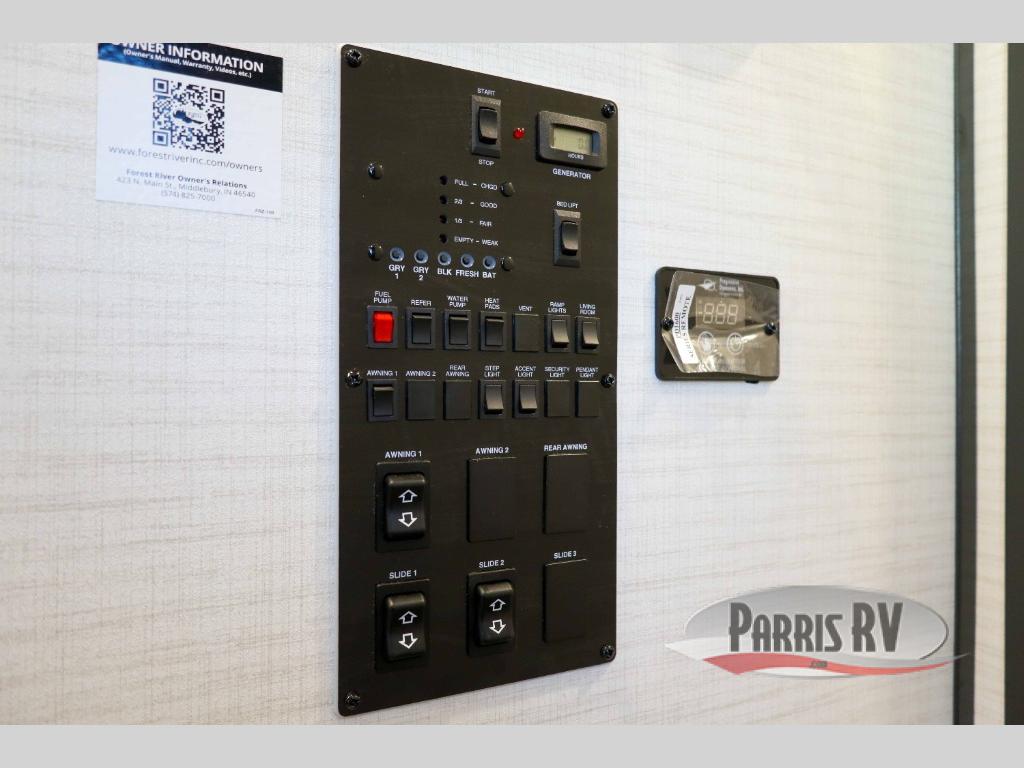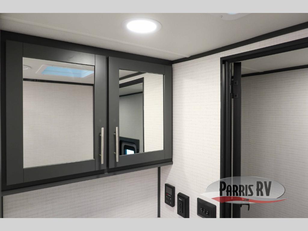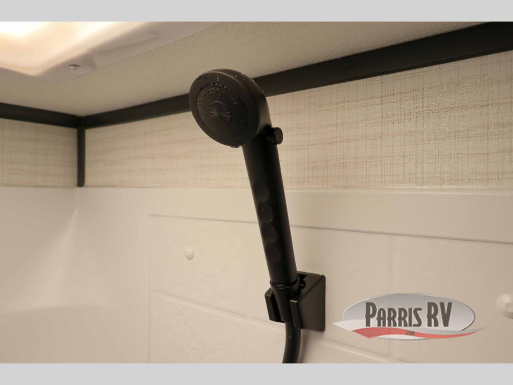 This toy hauler features 15' 7" of total garage space so you can easily fit your toys in! Once they're unloaded, you can relax on the electric pass-thru dinette or dual lounge chairs. There is also an entertainment center slide here. You'll find a cooktop and convection microwave in the kitchen to make meals each day. The full bath will let you clean up after trail riding, and the front private bedroom with a king bed is sure to bring a great night's rest. There is also a dresser slide out in the bedroom for added storage and space!