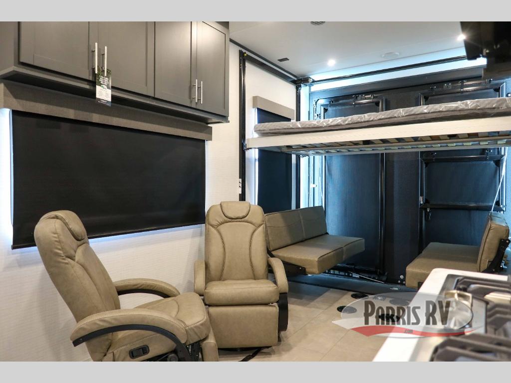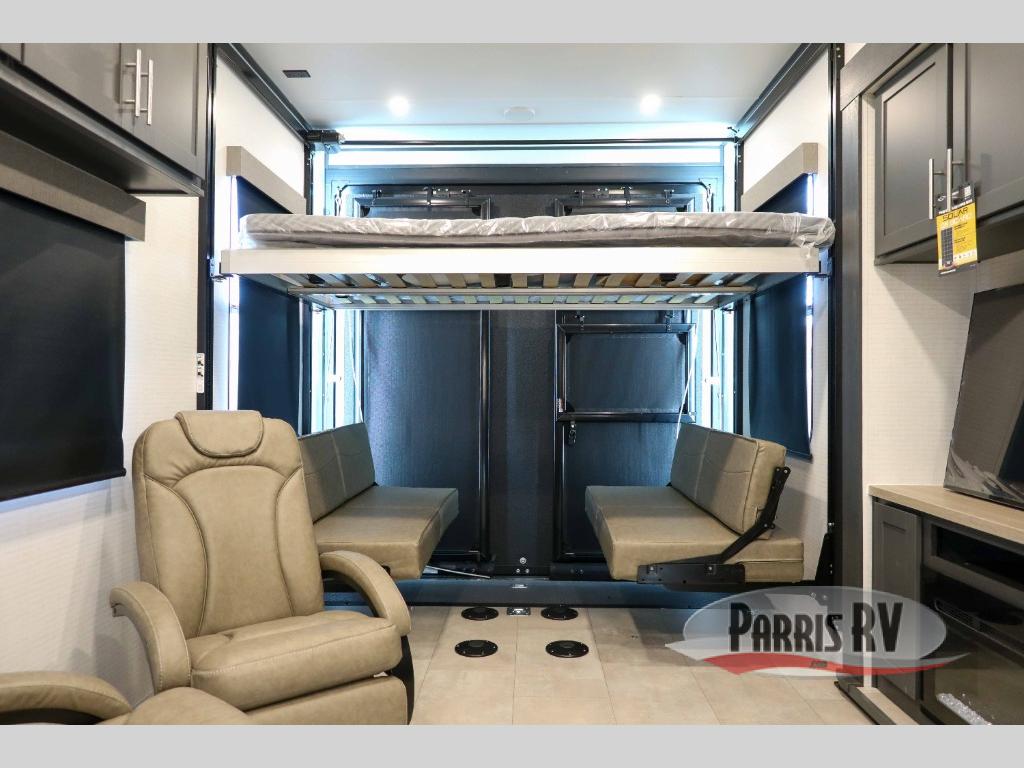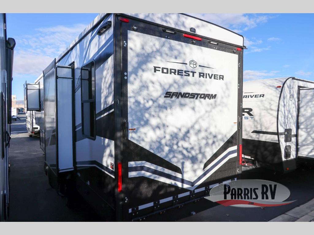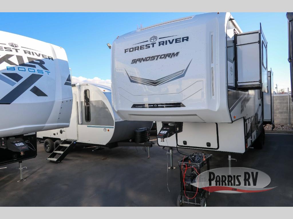Enjoy flexible living and affordable costs with the Sandstorm fifth wheel and travel trailer toy haulers! The versatile garage areas can be used for both toy storage plus seating and sleeping spaces. Each model includes a ramp door with patio cables, a power tongue jack, and a 40-gallon fuel station to keep your bikes filled and ready for adventure. The residential king bed is sure to bring comfort each day, along with a tankless water heater so everyone can clean up after trail riding. There are a variety of floorplans to choose from, including GX models with added features for those who want to take their excursions up a notch!