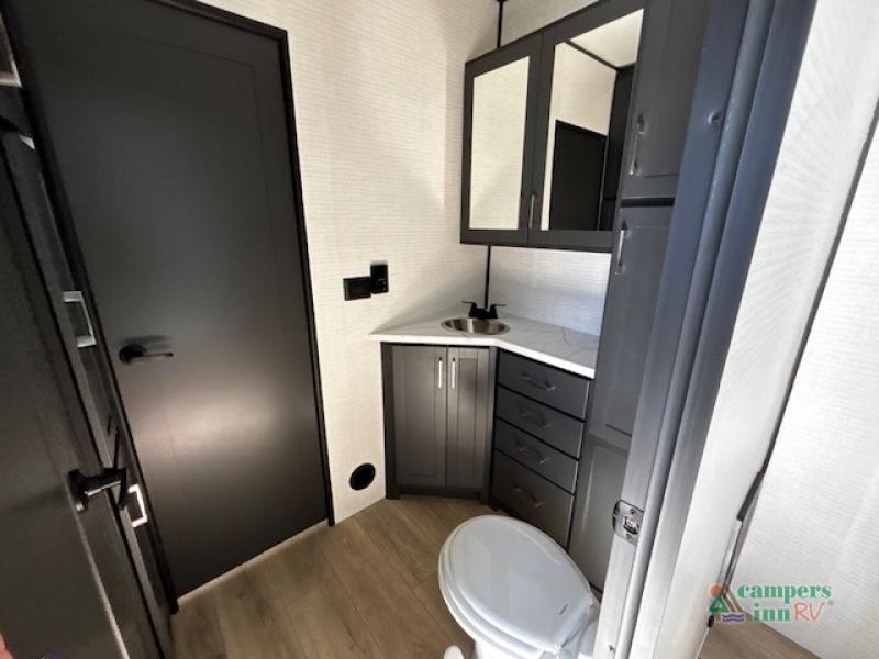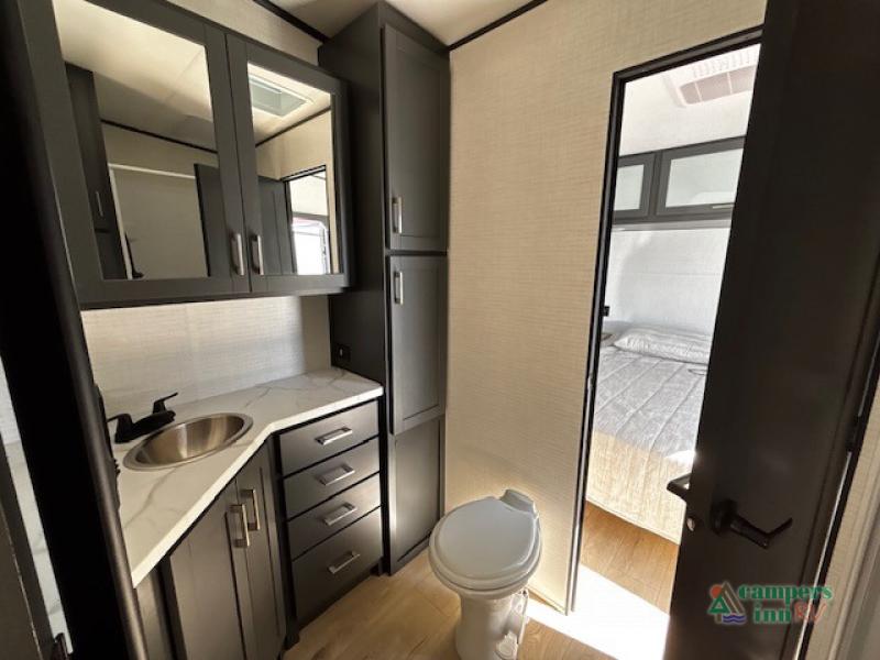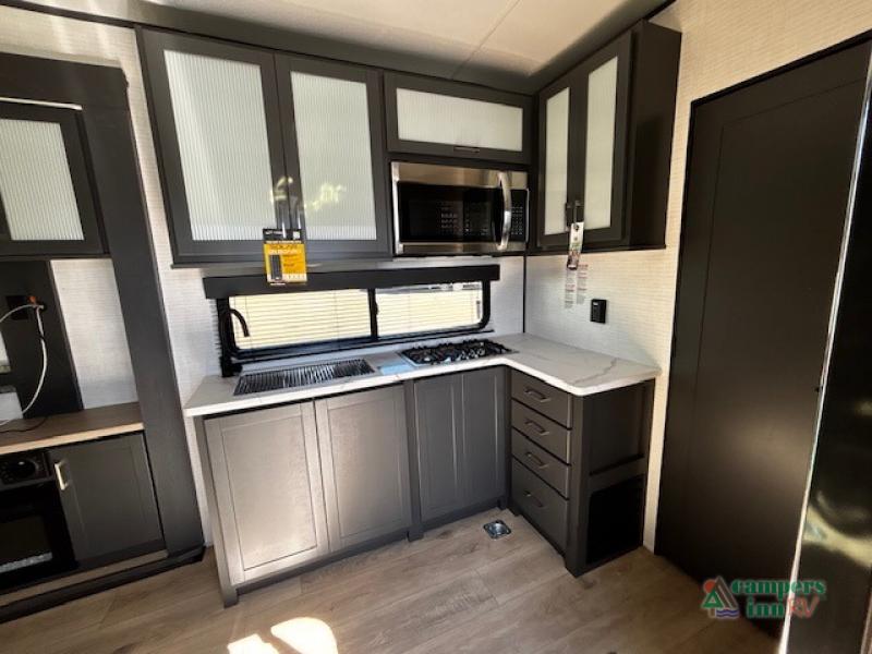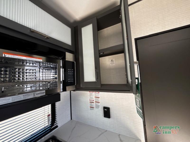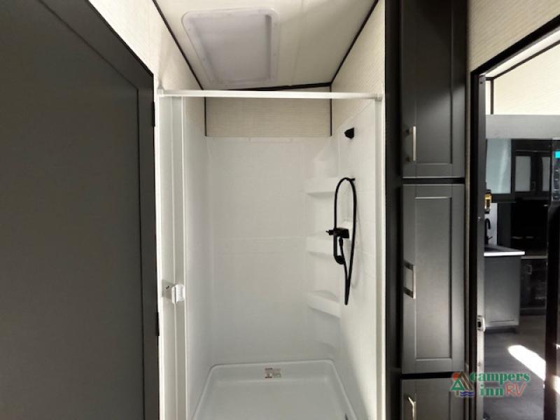 Every Shockwave toy hauler is engineered for the adventurous spirit. With a versatile garage that doubles as a lounge or sleeping area, a fully equipped kitchen, and a bathroom designed for convenience, you’ll have everything you need on the road. Add in generator prep for off-grid living, plus exterior storage for your essentials, and you’re ready for the next big trip.