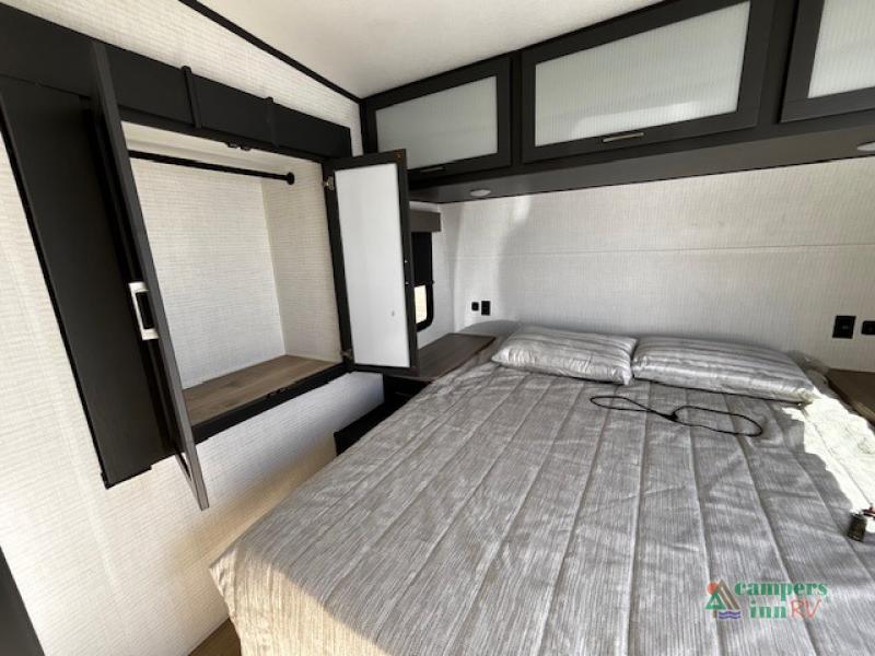 Private Front Bedroom – Featuring a king bed and dresser slide-out for added storage.