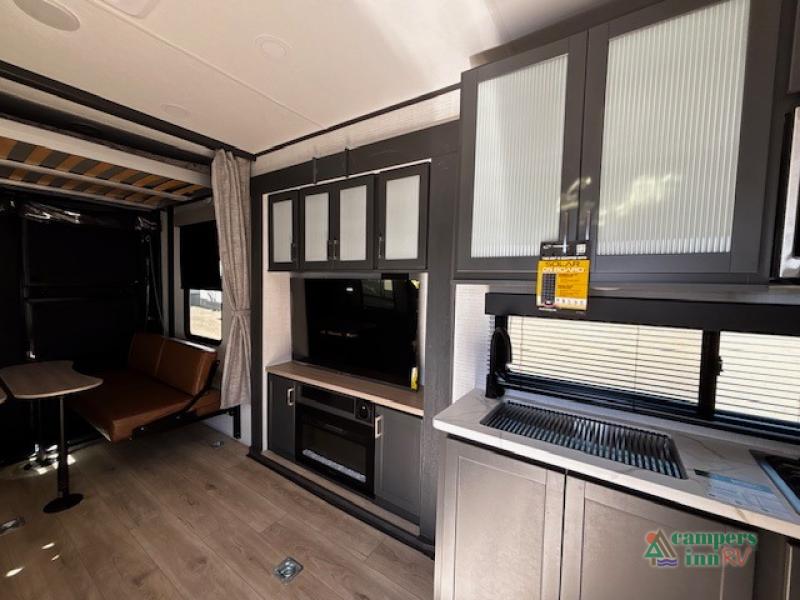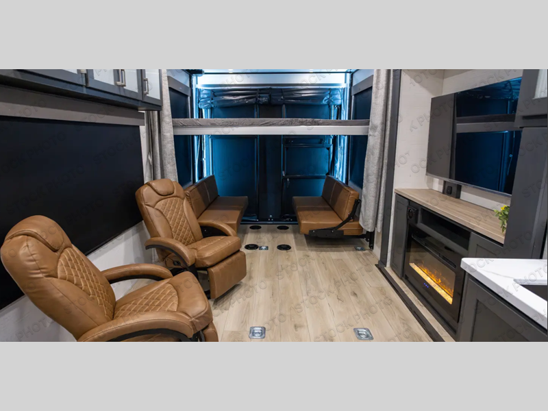 Dual Slides for More Space – Including an entertainment center with fireplace for cozy evenings.