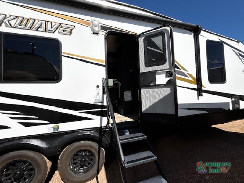 The Forest River Shockwave is built tough so you can focus on the fun. With a versatile garage, fully equipped kitchen, and generator prep, this toy hauler is ready for dry camping, long weekends, or extended road trips. Thoughtful storage and durable construction mean your adventures don’t have to be limited by space or conditions.