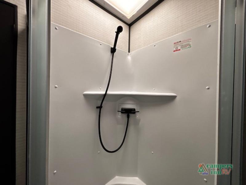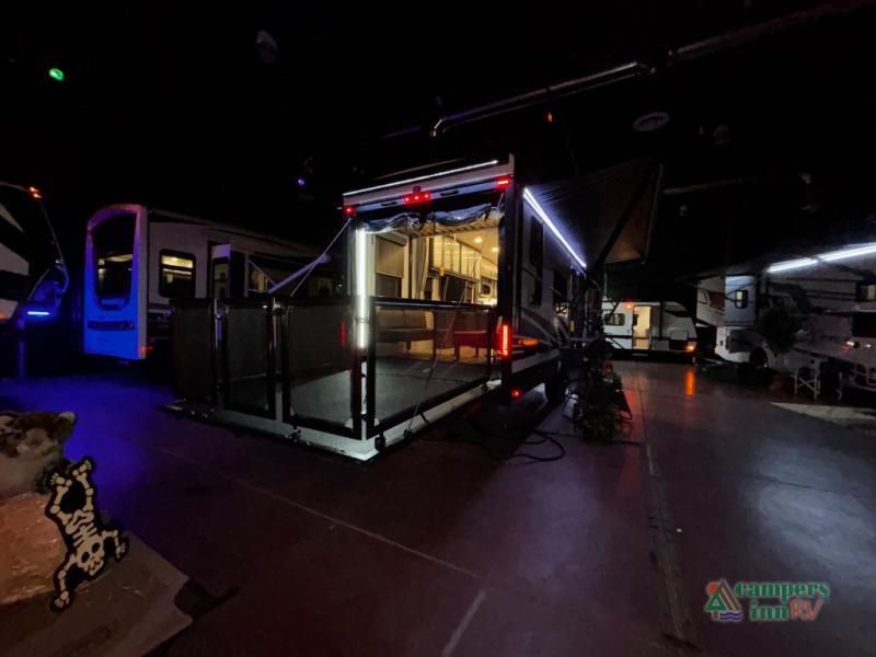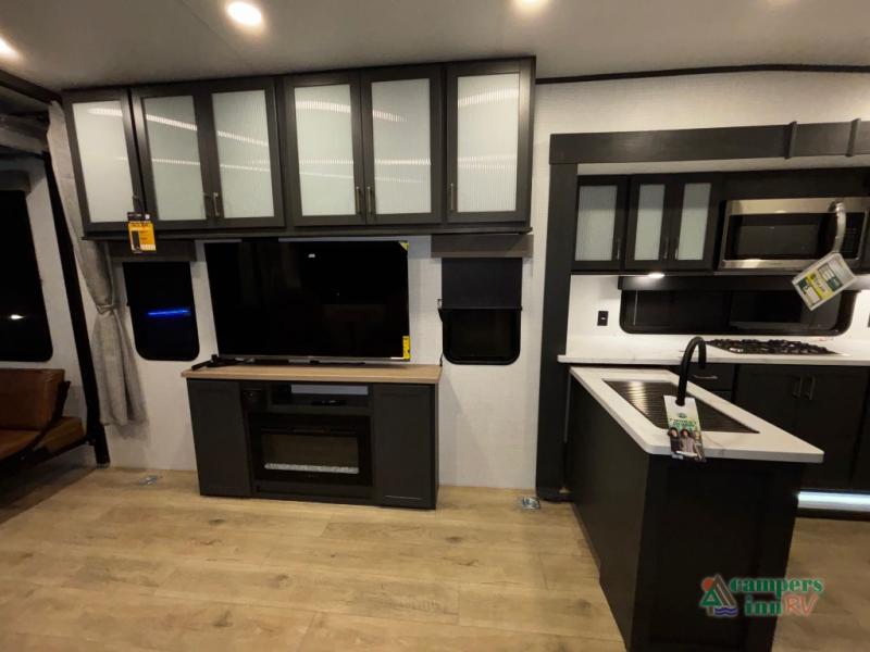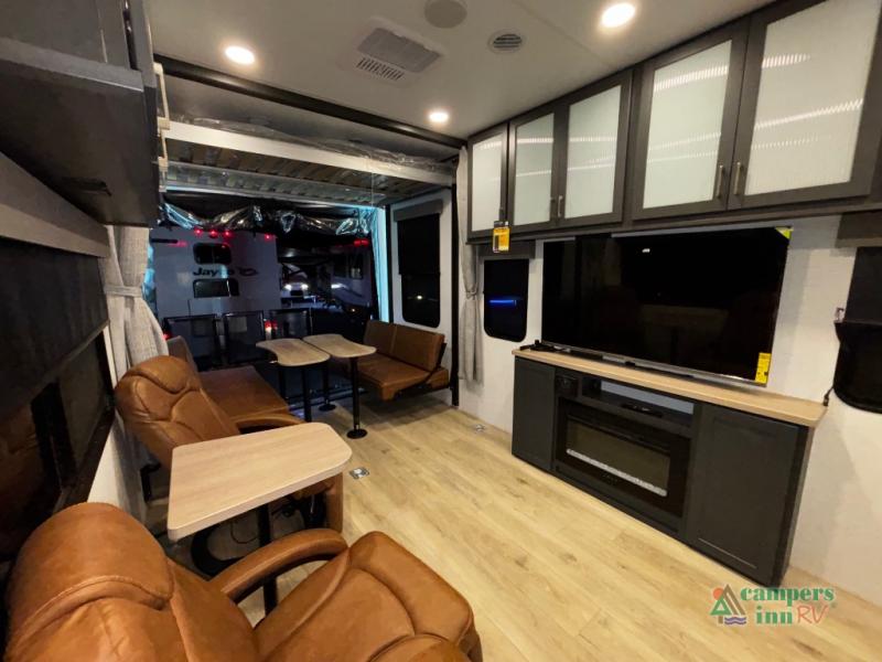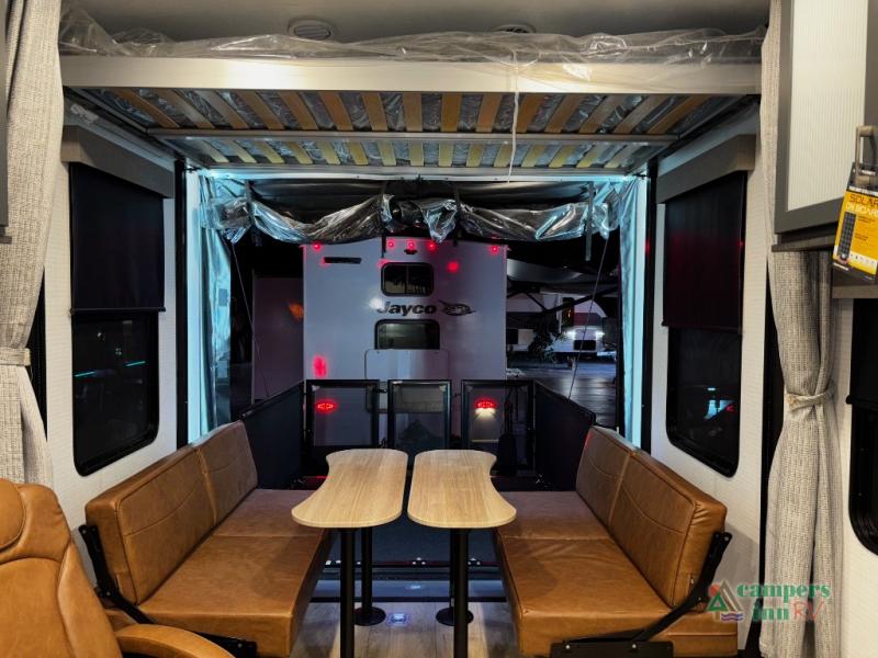 Dual Lounge Chairs & Electric Pass-Thru Dinette – Relax after a day on the trails, gather for meals, or play games with family and friends.