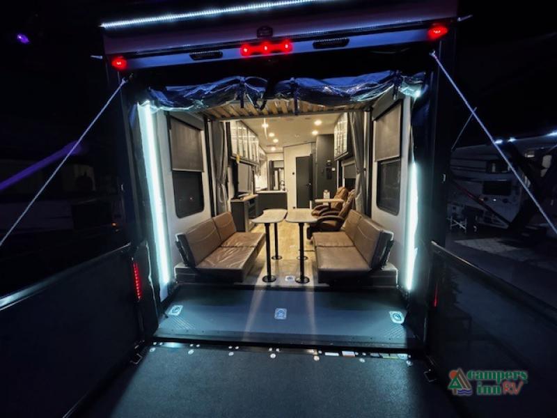 15' 7" Garage Space – Bring along ATVs, dirt bikes, kayaks, or gear with ease. Once unloaded, the garage transforms into a living and sleeping area.