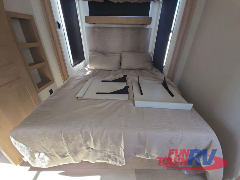 Each one of these Forest River Sierra fifth wheels are equipped with everything you need to make the most of each adventure! The underbelly armor will protect your unit's vitals from road debris and the painted two tone aerodynamic fiberglass front cap has an improved turning radius to make them easier to navigate. With an electric leveling system, you can set your unit up quick and easy then get to having fun faster than ever. The cambered powder coated frame with rust prohibitor construction allows for more duration of the fifth wheel. Each model also comes with a TV antenna with booster, 60,000BTU on demand tankless water heater, Goodyear Radial tires with 7,000 lb. axles, and the list goes on. The interior is just as impressive with Beachside Sundance Congoleum linoleum, recessed residential lighting, a memory foam mattress, and hidden hinged, soft close drawers and cabinets!