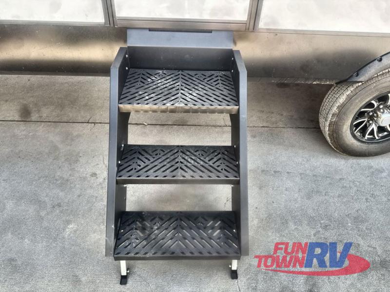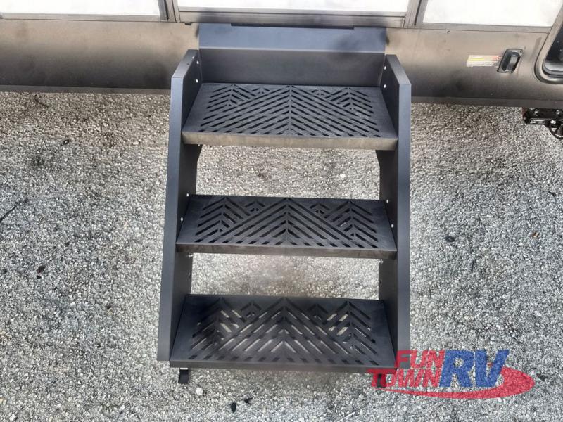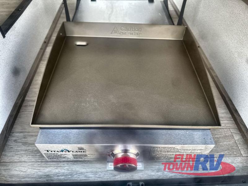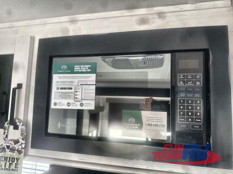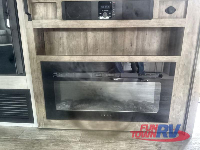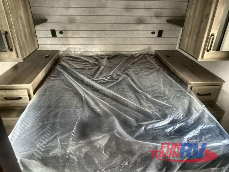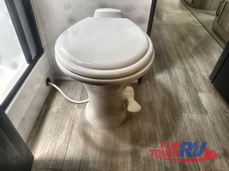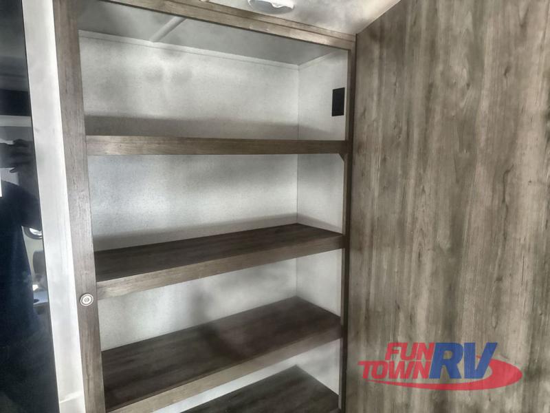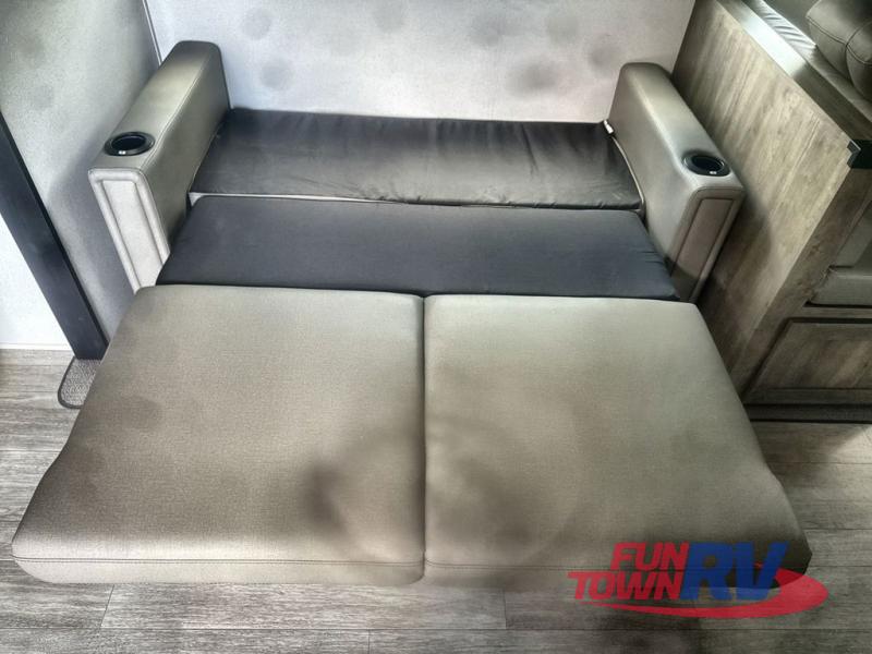 Whether you are looking for a bunkhouse, a private bedroom, or dual entry doors in your next RV, this one might just be the perfect fit with all those features! There are 45" x 72" bunk beds, each with their own wardrobe and their own private entry door, making it perfect for camping with older kids. The galley kitchen offers amenities such as a microwave, cooktop, an 11 cu. ft. refrigerator, and an L-shaped counter for preparing and serving meals. You will also find more storage, an entertainment center and a slide out sofa sleeper and booth dinette that offer more sleeping space when needed.