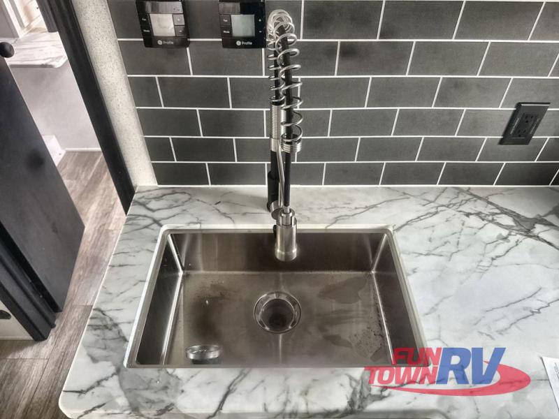 Each SolAire travel trailer by Palomino features a white gel coat exterior and an aluminum superstructure frame for lightweight towing. You will love having a power tongue jack for easy set up, plus slam latch baggage doors with magnets to make unloading easier than ever. There is also a power awning with LED lights and aluminum wheels included on the exterior. Each SolAire is constructed to last with Azdel composite, a fully laminated rear wall and roof, plus a fully enclosed and heated underbelly. The interior includes roller shades and kitchen backsplash, USB ports to keep your electronics charged, a Bluetooth stereo with speakers, and many more stand-out features!