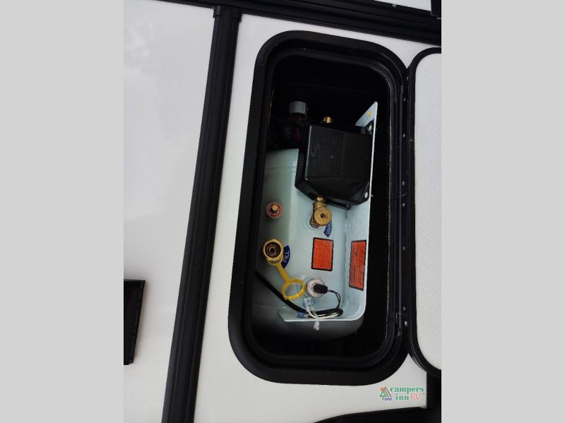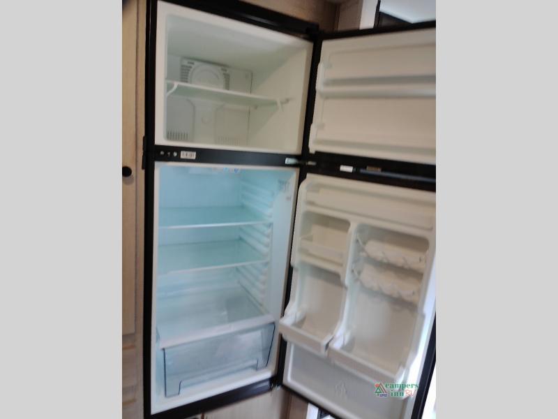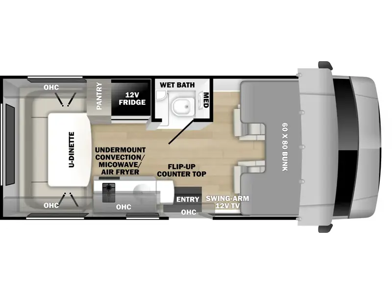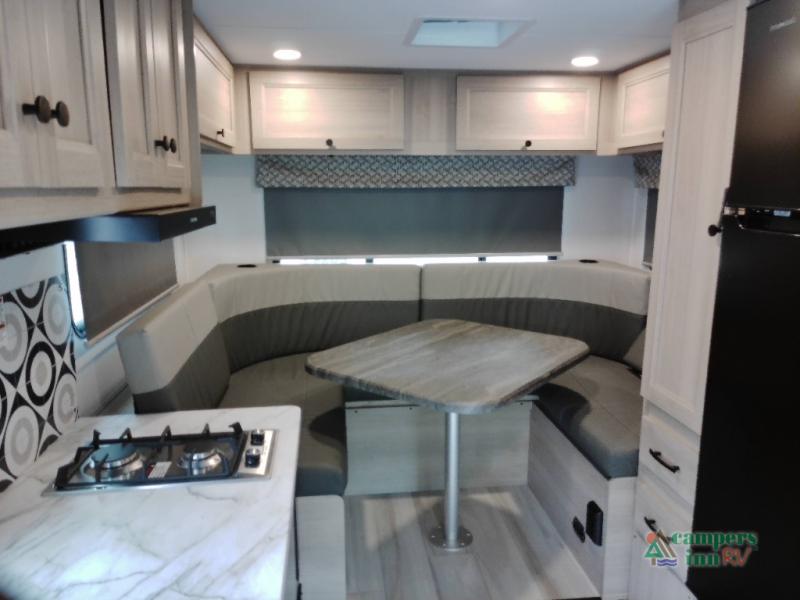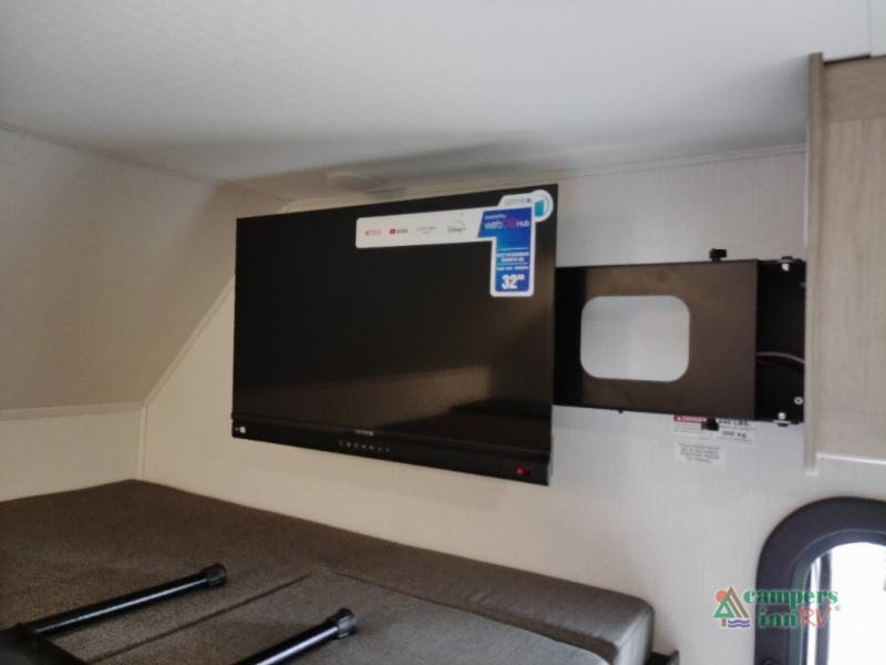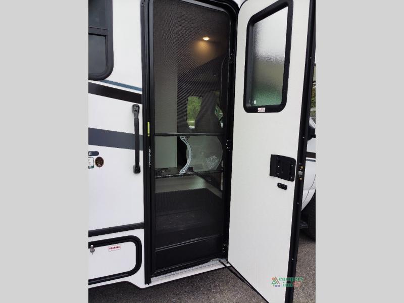 Step inside and you’ll find a surprisingly open layout with everything you need for memorable trips. The rear U-shaped dinette doubles as a cozy lounge or a roomy dining spot with a view. The bunk over cab adds extra sleeping space, perfect for guests or family adventures, while the wet bath keeps your morning routine simple and efficient. Thanks to the LE Premier Package, you’ll enjoy modern amenities like a backup camera, premium sound system, and solar charging system—all designed to keep your travels safe, comfortable, and connected wherever you go.