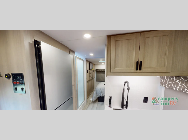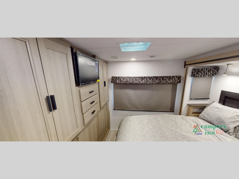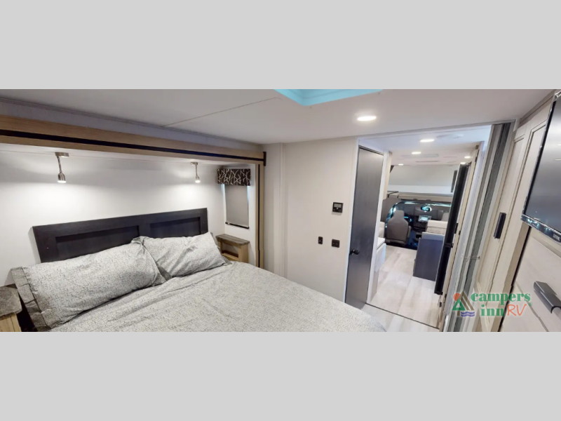 Stay connected wherever you go with the Winegard Air 360+ digital antenna for internet, TV, and FM signals, along with 4G Wi-Fi capability. Inside, details like blackout roller shades, soft-close drawers, and an oxygen-infused showerhead elevate comfort to a whole new level.