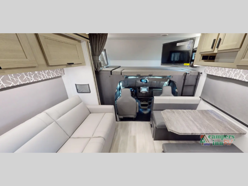 Step inside and experience home-like comfort with the Sunseeker Classic’s thoughtful layout. Relax on the plush sofa or gather around the booth dinette for a meal, a card game, or an evening chat. The large windows and well-placed lighting make the interior bright and welcoming, while the two included TVs provide endless entertainment for movie nights or rainy-day downtime.