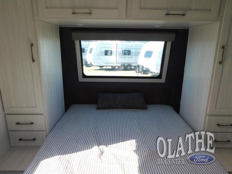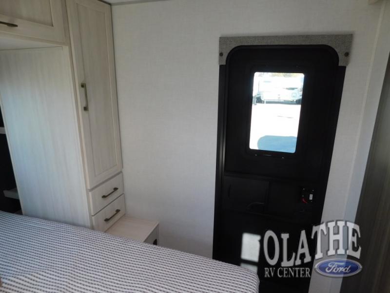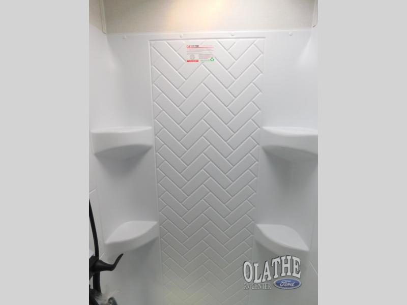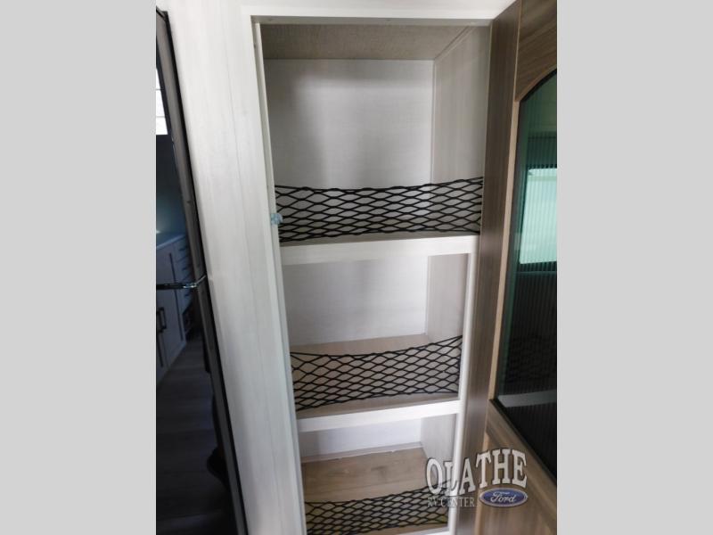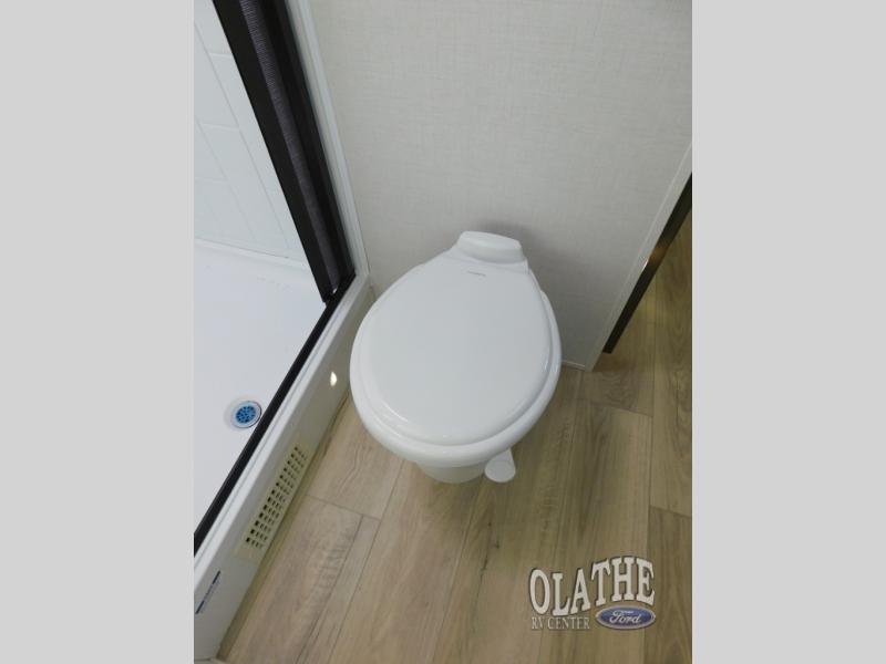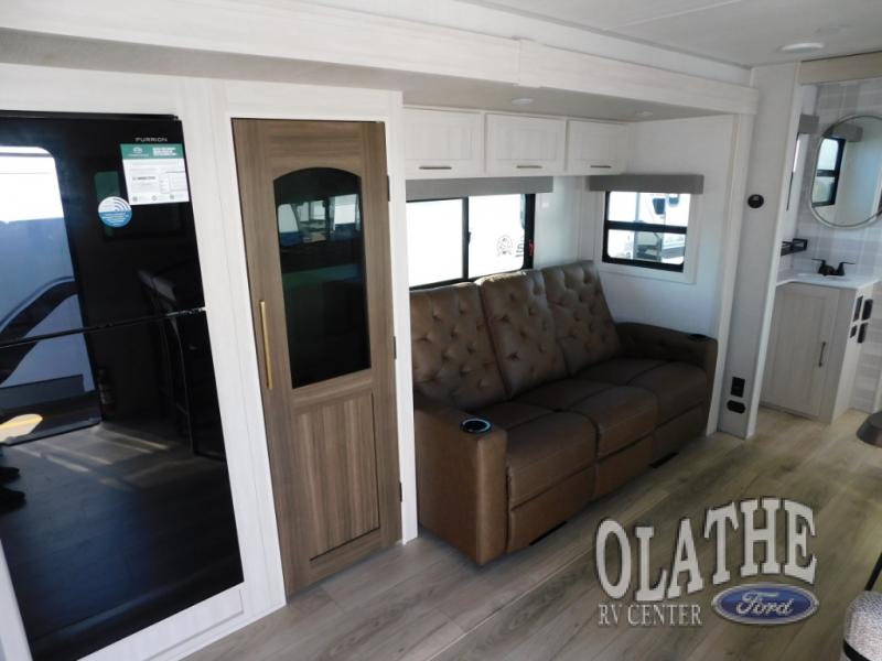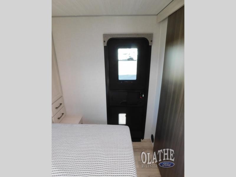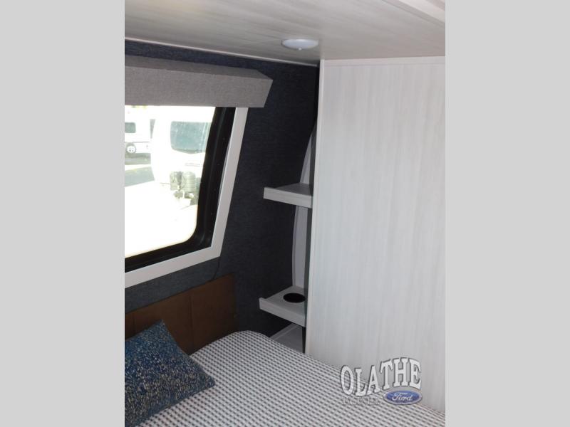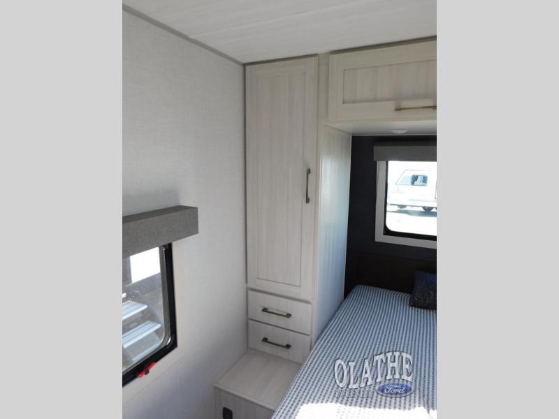 You'll love every minute spent in this cozy and convenient travel trailer. Since there are dual entry doors, you can enter in through the front master bedroom with a queen bed or the rear kitchen with ample counter space! A walk-thru bath will be easily accessible for everyone to use, and there is a night light here so you don't wake your crew up in the middle of the night. The EZ-out sofa slide in the main living area will provide a cozy seating space, as well as sleeping space for guests. And you can dine each day at the booth dinette or at the bartop with two seats that overlook the dinette!
