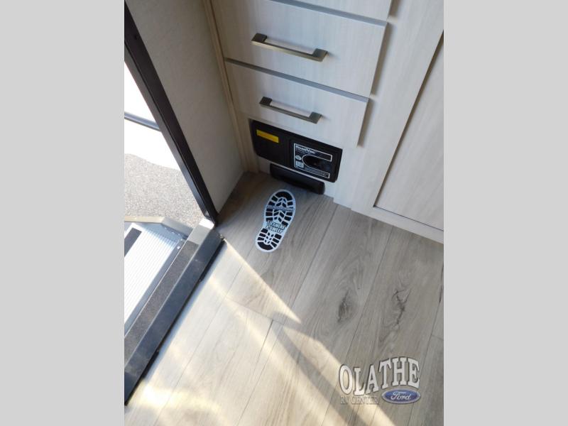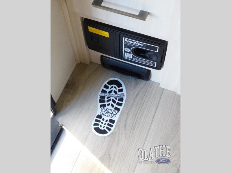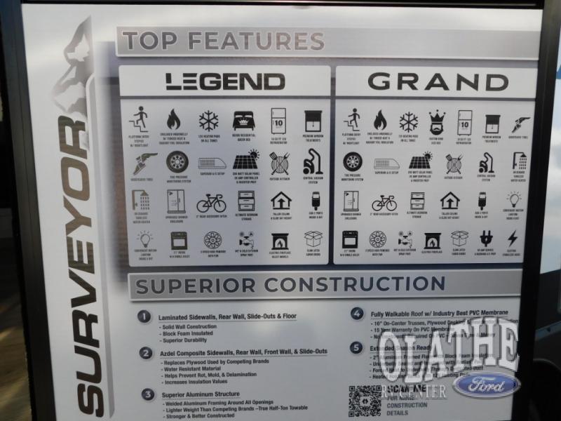 With any Surveyor Legend travel trailer by Forest River you will enjoy quality craftsmanship, convenient amenities, and at-home comforts. The Azdel composite walls provide a longer-lasting trailer, and the power tongue jack with a hitch light will get you back on the road in no-time. There are also Goodyear tires and a tire pressure monitoring system for hassle-free towing. Each model includes the Surveyor Legend Package that comes standard with oversized dinette storage access doors, front slam latch baggage doors, plus an automotive style tinted front windshield. You'll appreciate camping with a tankless water heater for endless hot showers, a 2" accessory hitch to bring bikes along, plus carpet-free interiors and a central vacuum system for easy clean up.