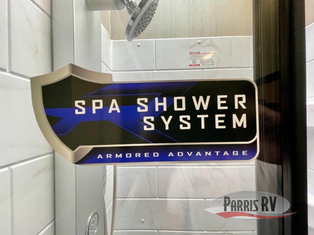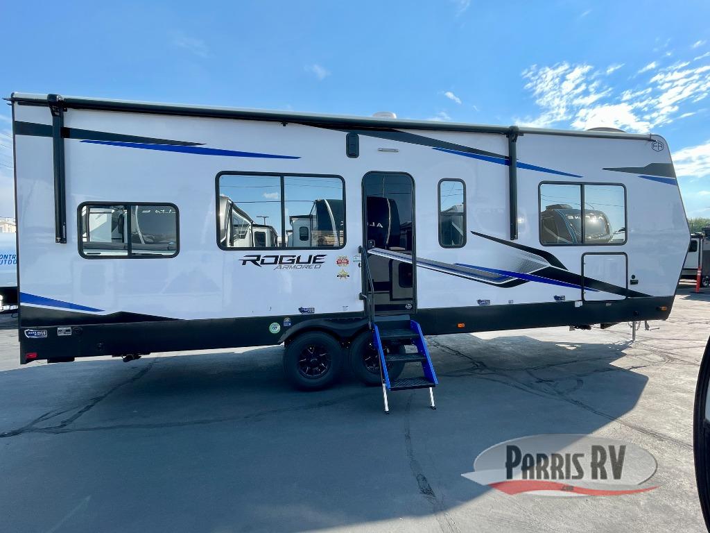 Every one of these Forest River Vengeance Rogue Armored travel trailer toy haulers come with the features you want most at an affordable price tag! The DuraPoxy gas/oil resistant floor has 5,000 lb. tie downs to ensure your toys will arrive safely without damaging the flooring, plus the 3,000 lb. rated ramp door makes it easy to load them. A 15,000 BTU A/C will keep you cool even on the hottest summer days, and an Armored underbelly helps keep your unit's vitals protected. The Rogue Ready package comes a fuel station with a pump, a ramp door patio system, a TST tire pressure monitoring system, and many more stand-out features. And don't overlook the Rogue Premium Package with an 8' weatherproof ramp door, an exterior TV hookup for the option to add a television, blue accent wheels, and solar reflective safety glass windows to name a few conveniences.