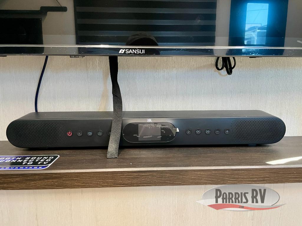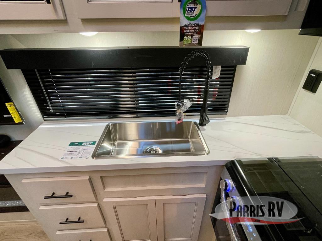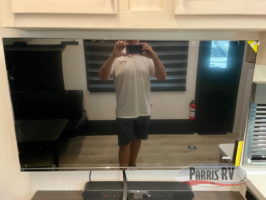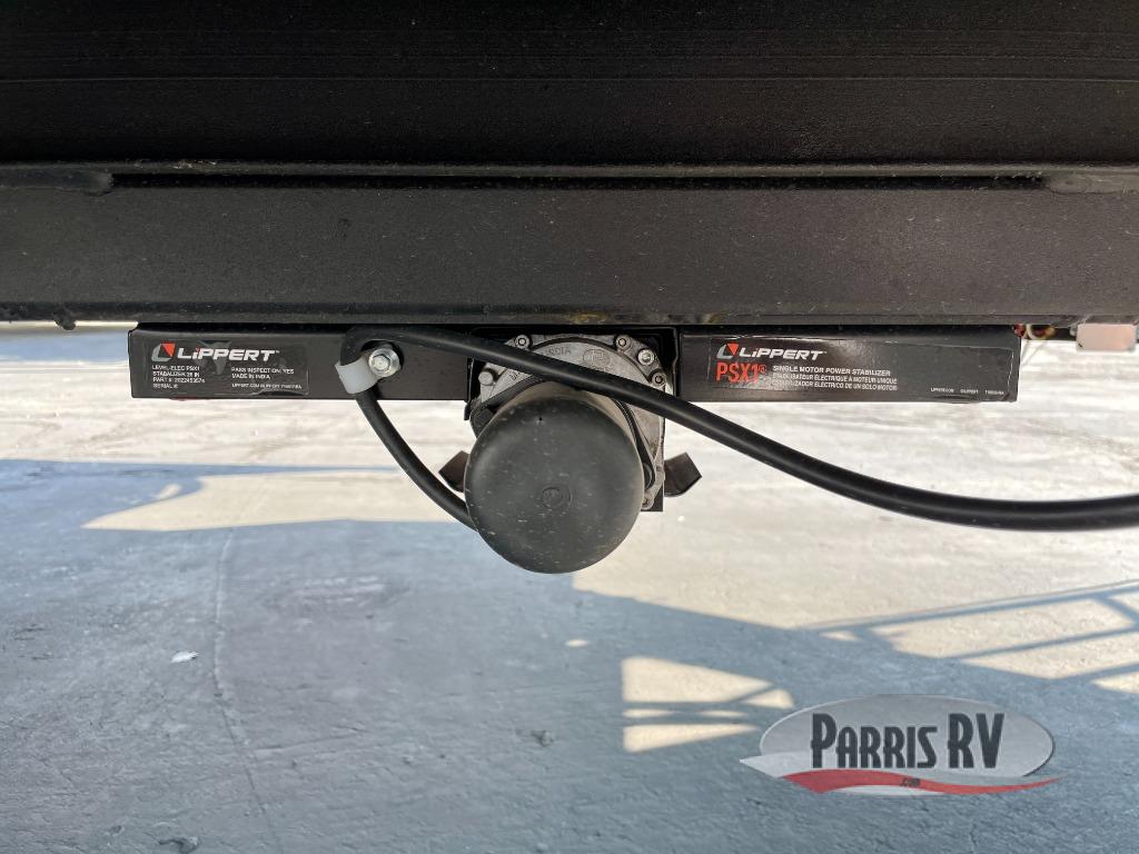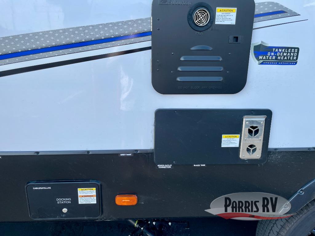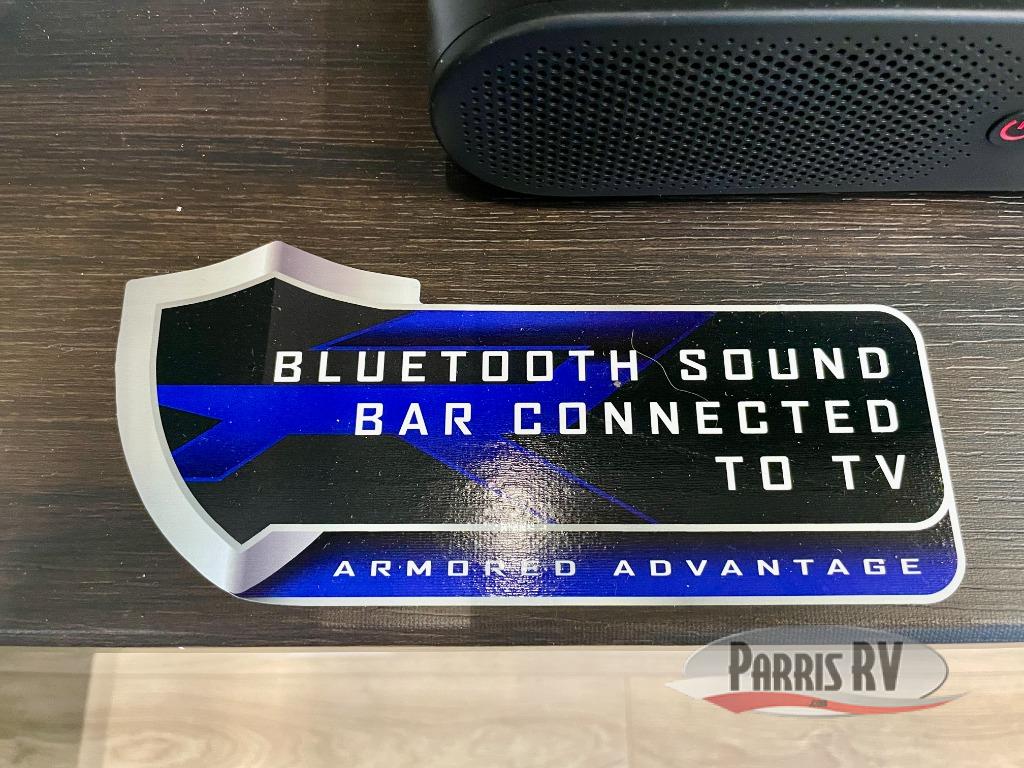 Head for the trails with this toy hauler in tow! Once your toys are unloaded from the 14' 1" garage, you can relax on the dual flip-up sofas with a queen bed above. There are also dual lounge chairs across from the entertainment center with a cozy fireplace and a hidden pantry behind for movies, games and more! The chef of your crew can make meals inside on the three burner cooktop, or head outdoors to utilize the outside kitchen. When you're ready to call it a night, retreat to the front private bedroom for a great night's rest on the trailer king bed slide out. There is also a large dresser here to keep your things organized.